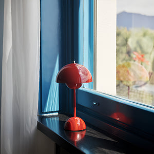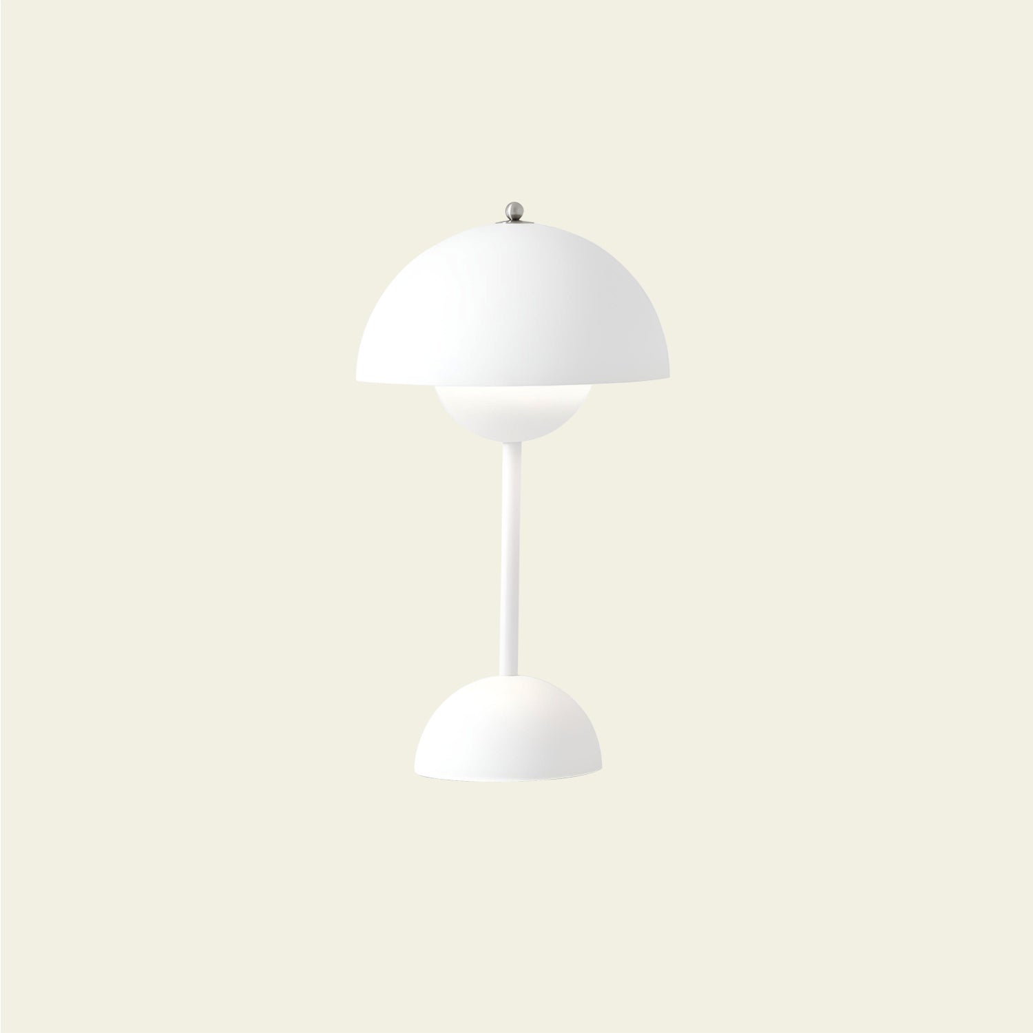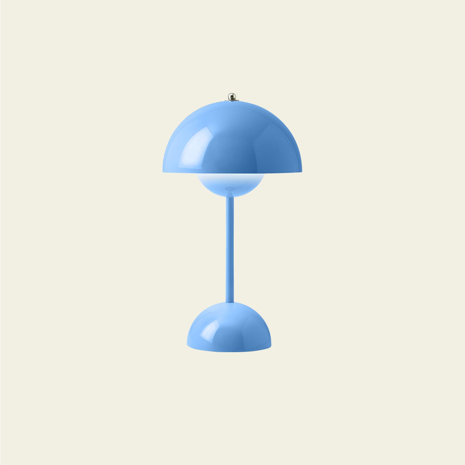 Among the most norm-breaking Danish designs of the 1960s, the Flowerpot is renowned for its iconic form. The series now includes seven different models. We are pleased to collaborate closely with the family to introduce five new vibrant colors for 2023: Cobalt Blue, Swim Blue, Vermilion Red, Tangy Pink, and Dark Plum. Slightly smaller in size than the table lamp version, the portable VP9 is deliberately lightweight and comes equipped with a USB charging cable, bringing a cozy atmosphere to both indoor and outdoor settings.