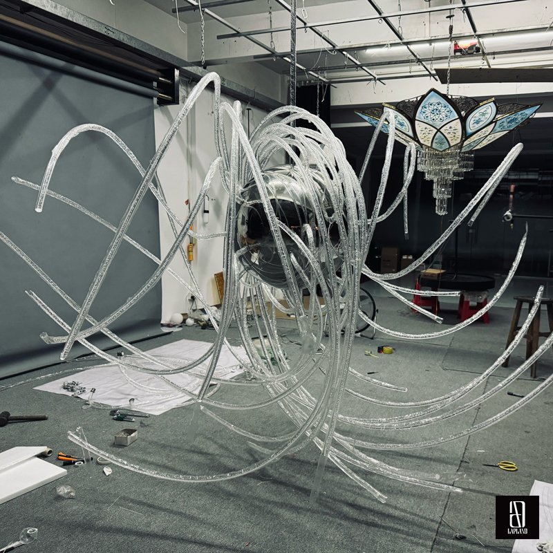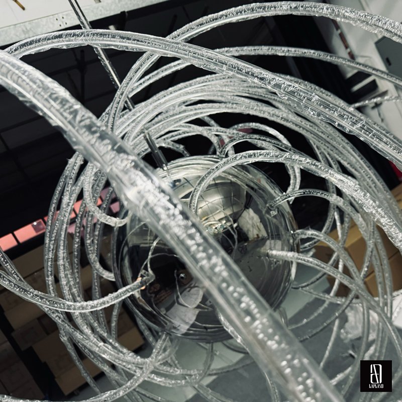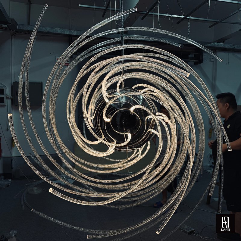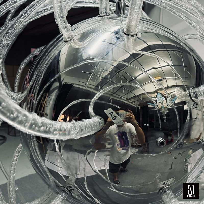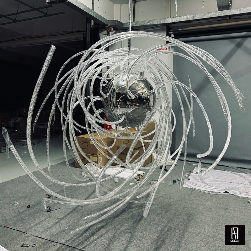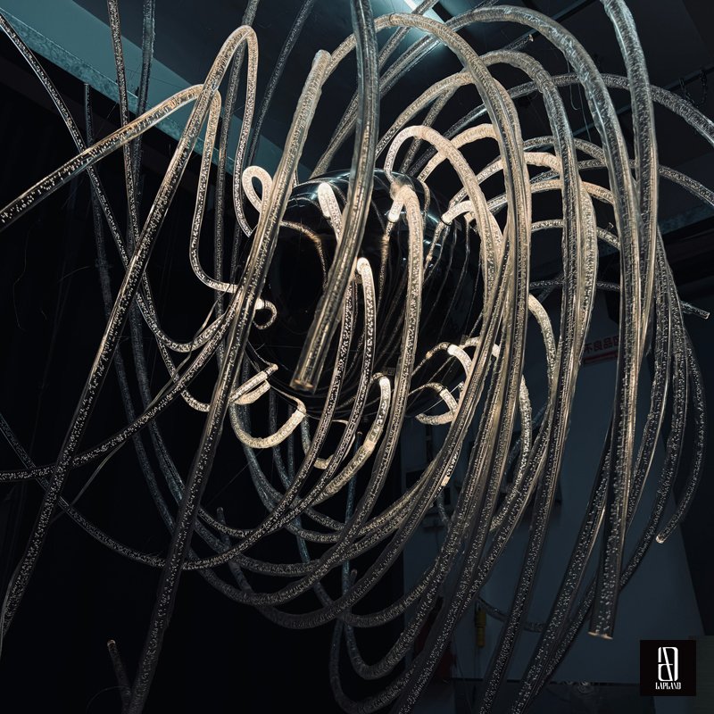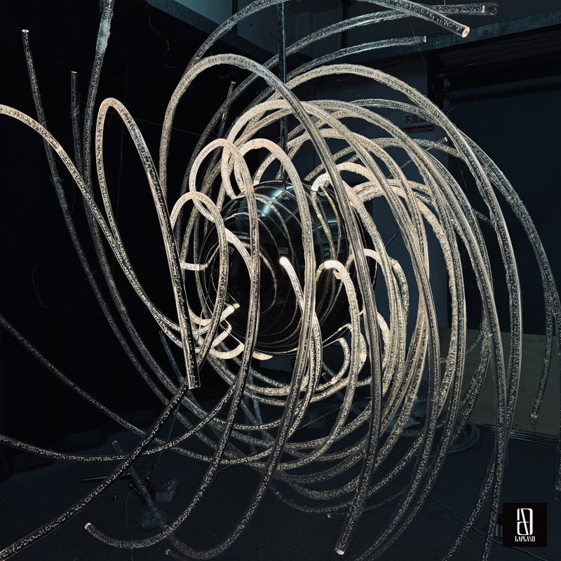 Utilize the unique characteristics of different materials to create diverse installation effects, making the alien-shaped flowing light art installation more visually engaging and dynamic.