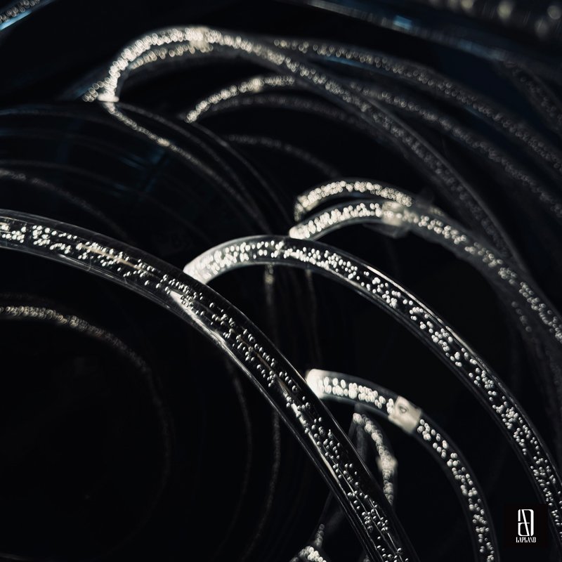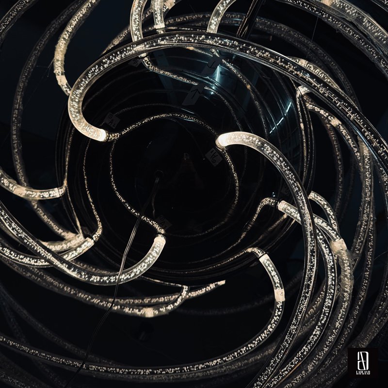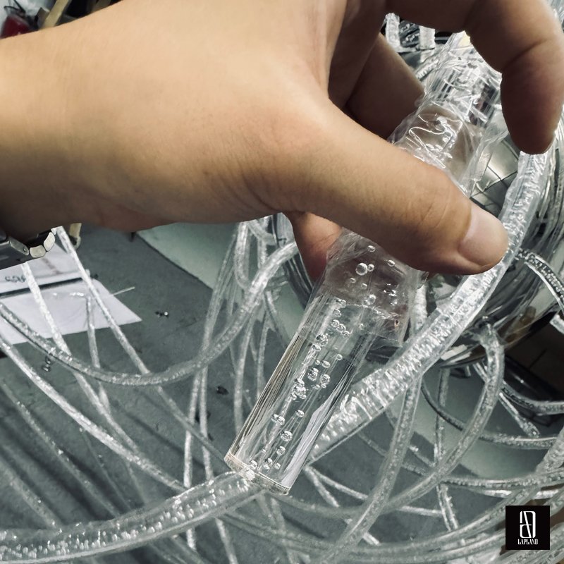 We use bubble acrylic as the light-guiding material and stainless steel in the central part of the fixture. The fusion of metal and acrylic creates a unique visual effect.
