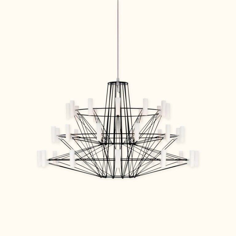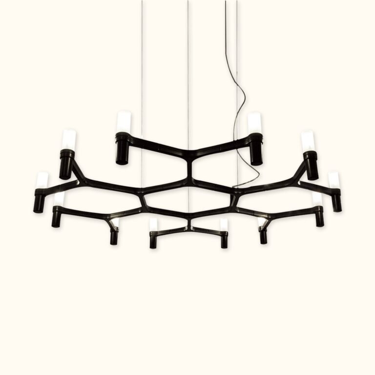 A contemporary design reminiscent of ancient chandeliers, this piece takes inspiration from the shape of snowflakes. It is characterized by