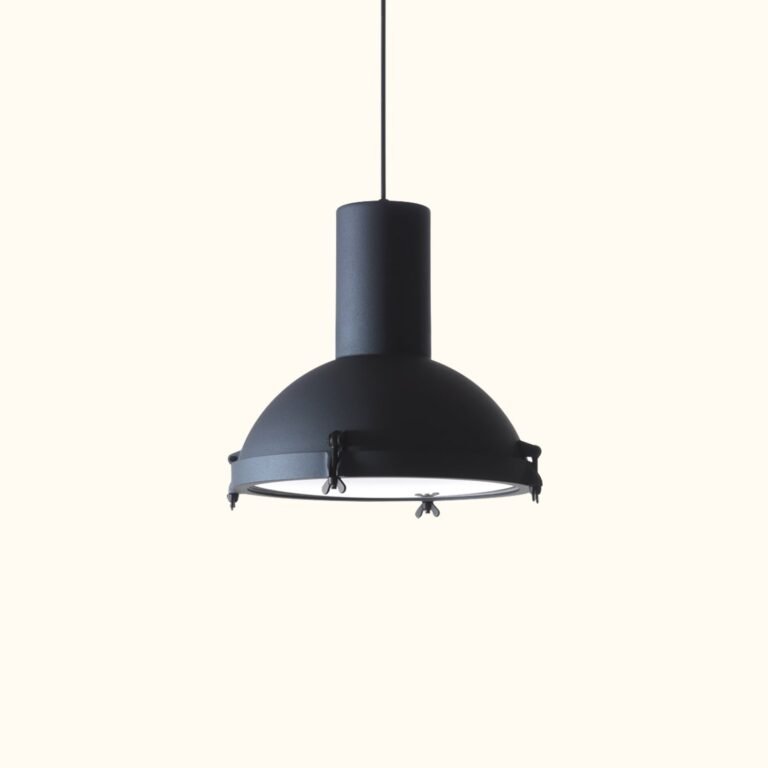 The semi-pendant light serves as both a funnel and a vortex, directing strong downward light through its trumpet-shaped shade. Designed