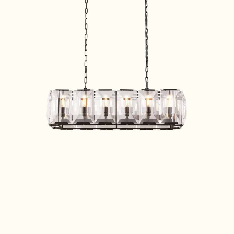 Our lighting fixtures are inspired by 1970s German chandeliers, evoking the boldness and glamour of that era. The cut crystal