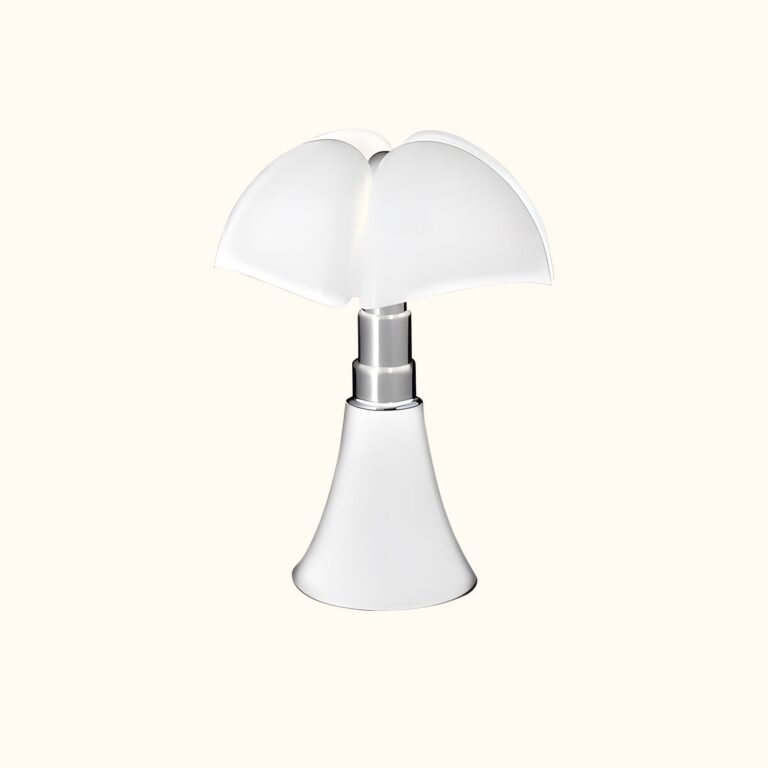 Pipistrello is a table or floor lamp with diffused light and adjustable height. It features a glazed stainless steel telescopic