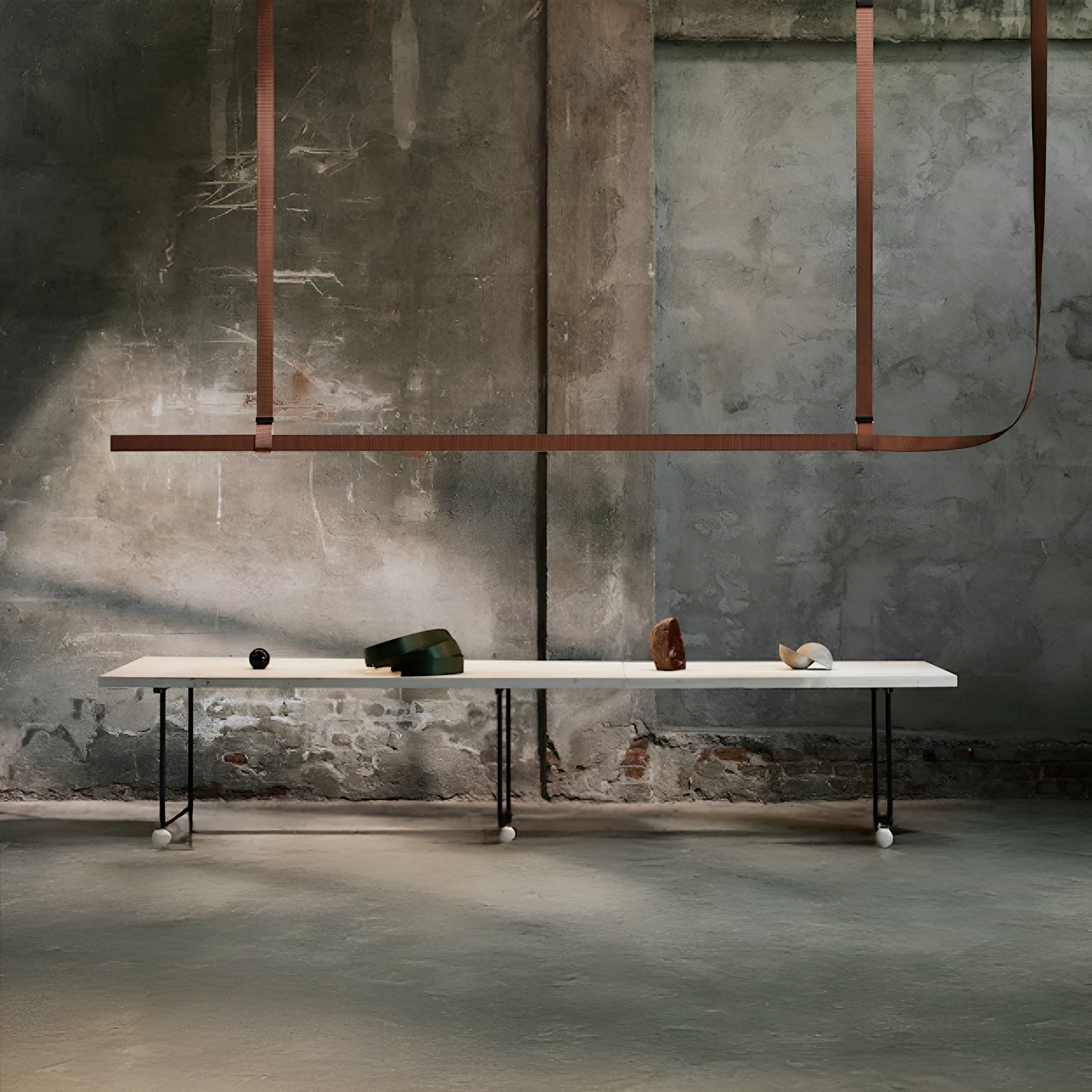 Belt is a fluid lighting system made from fine artisan leather or fabric that evokes dynamism and lightness.