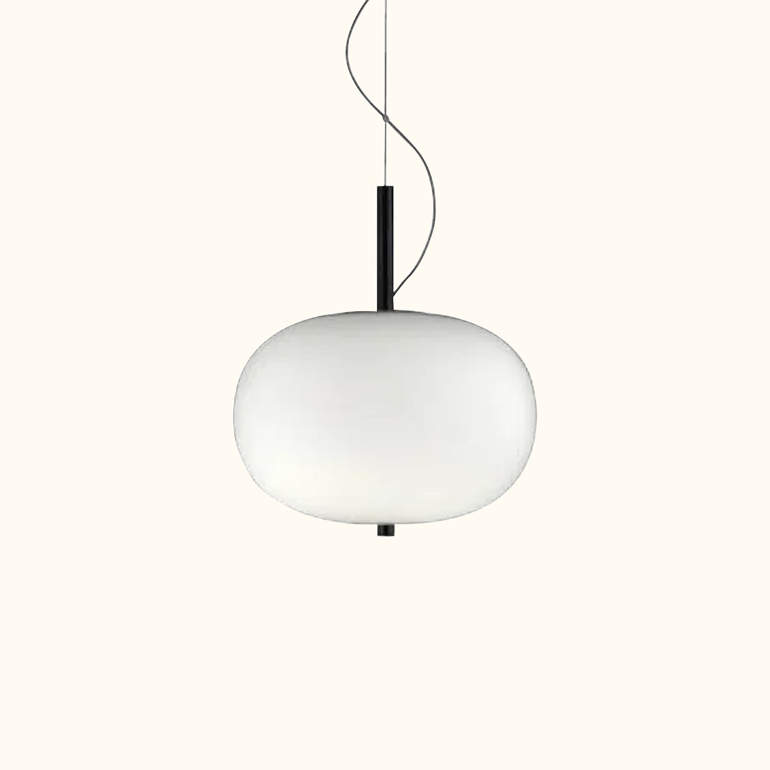 This lamp evokes the “moon” of the Basque region, featuring a subtle and minimalist design that includes a wooden stick inserted into a hand-blown glass sphere. Reminiscent of an art sculpture, the light hangs in the air, with two sizes of glass combining to create a double suspension.
