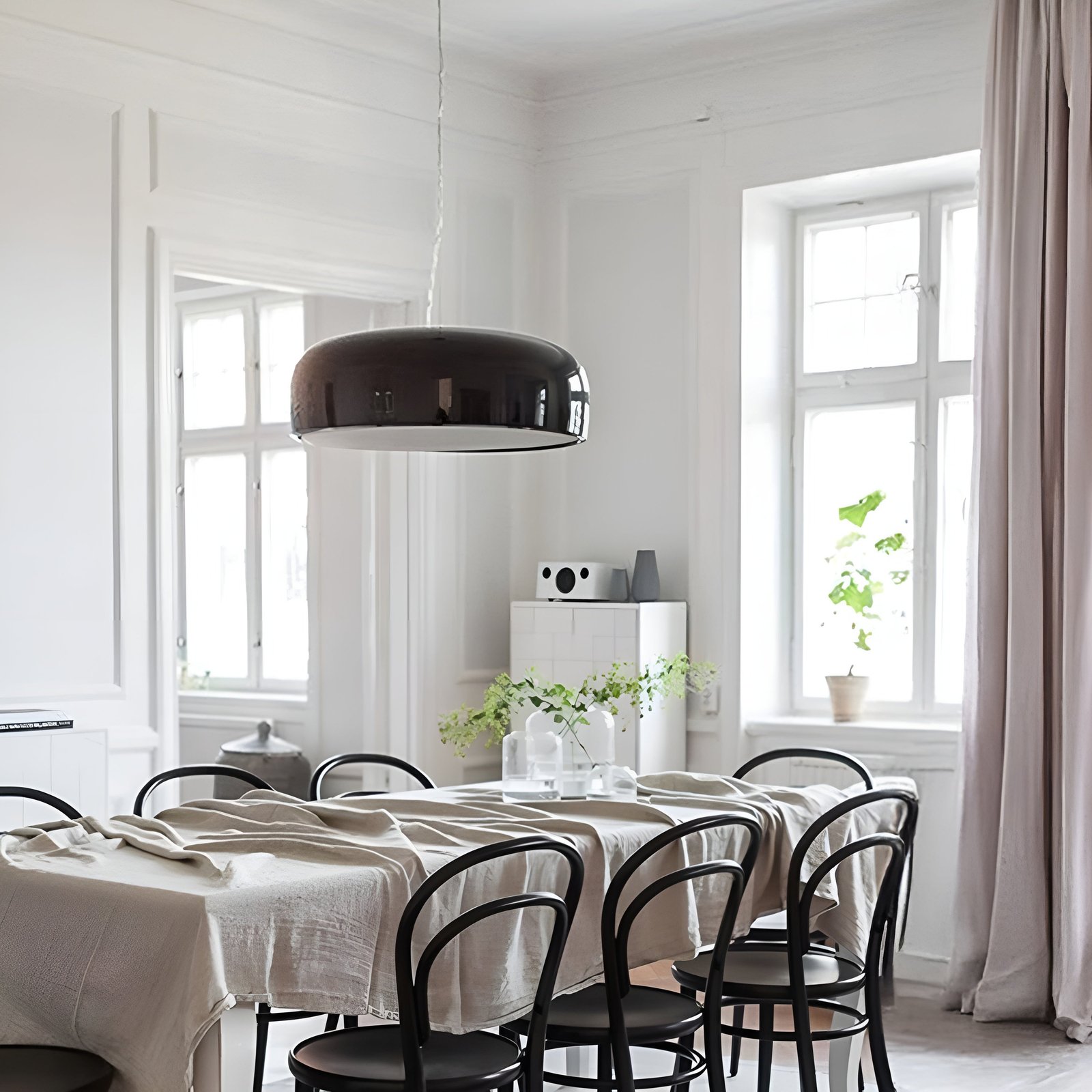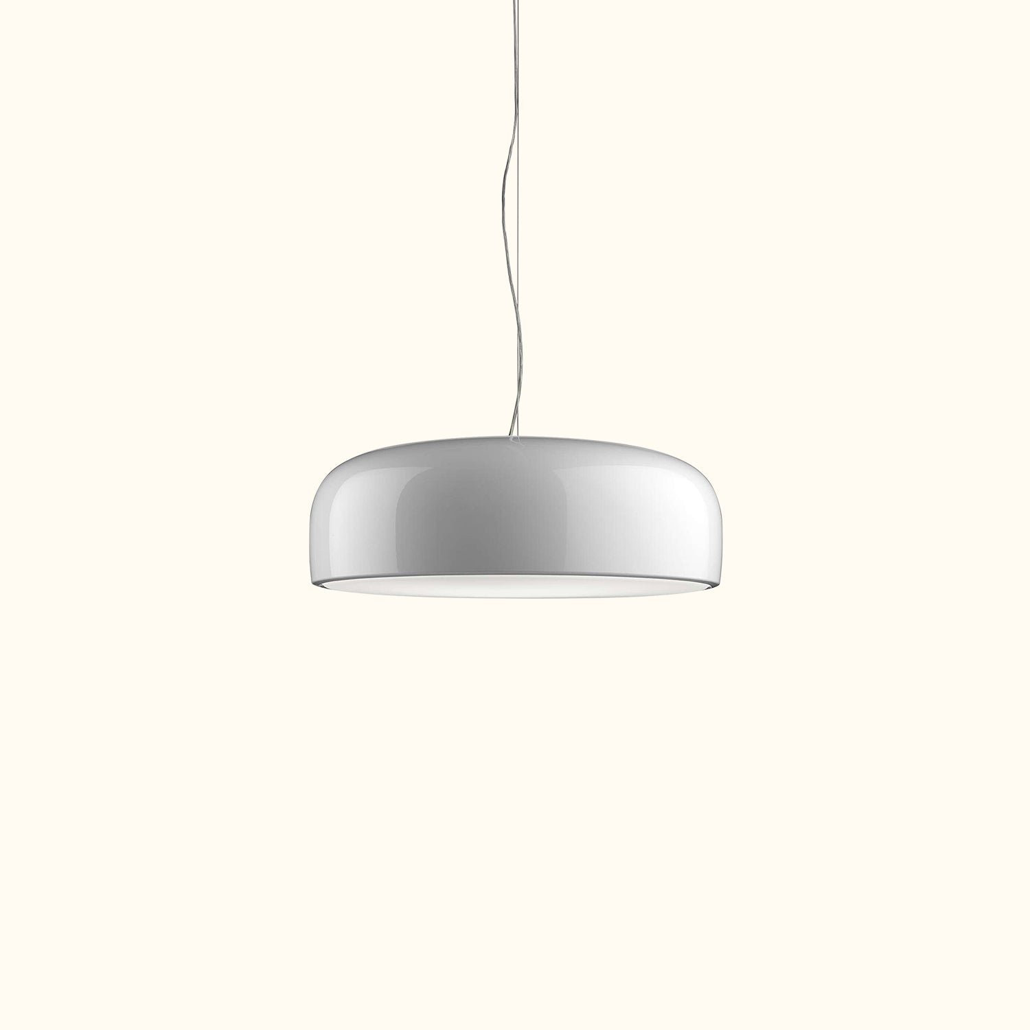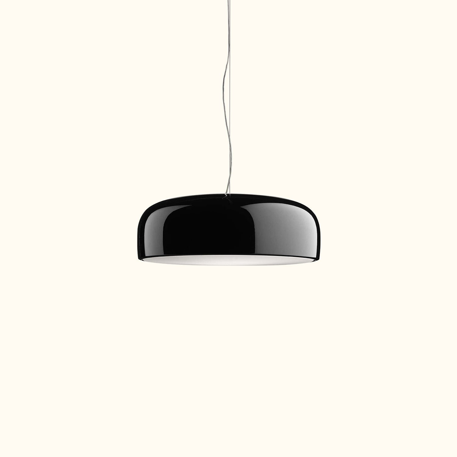 Pendant light with direct lighting. Aluminum body. Available in glossy black, matte black, red, green, white, or MUD.