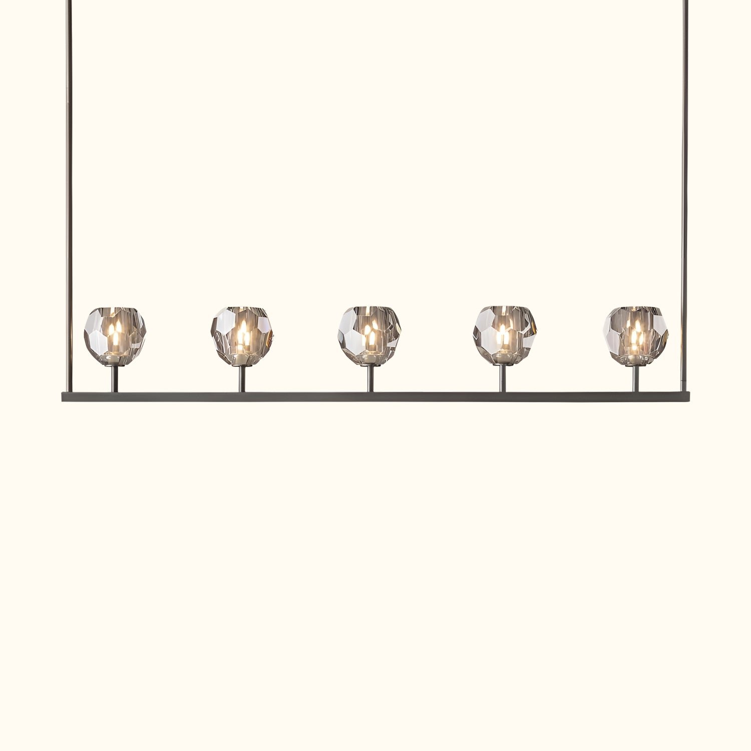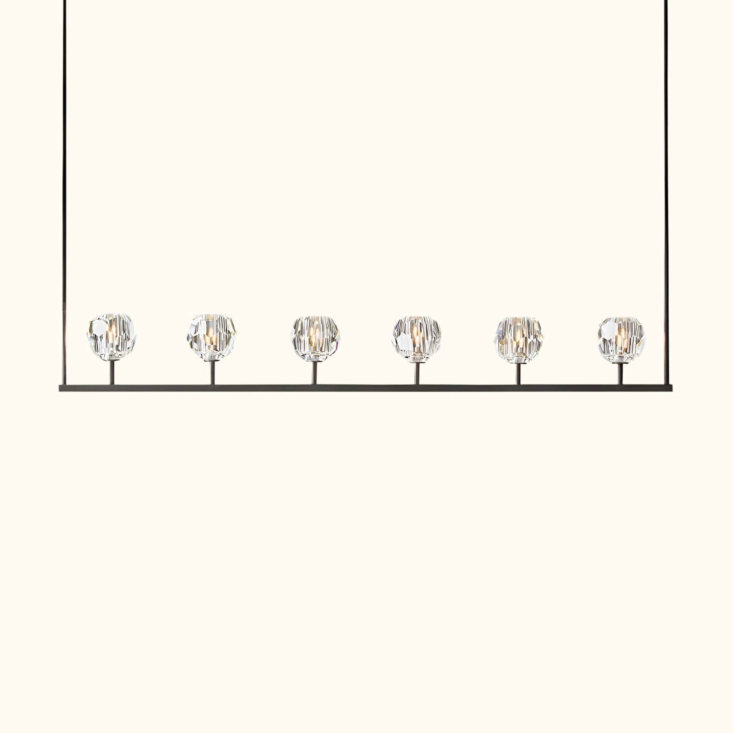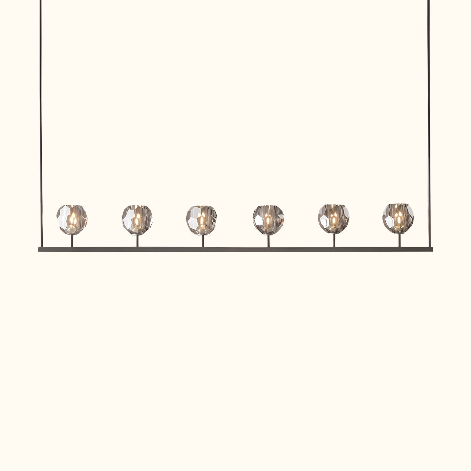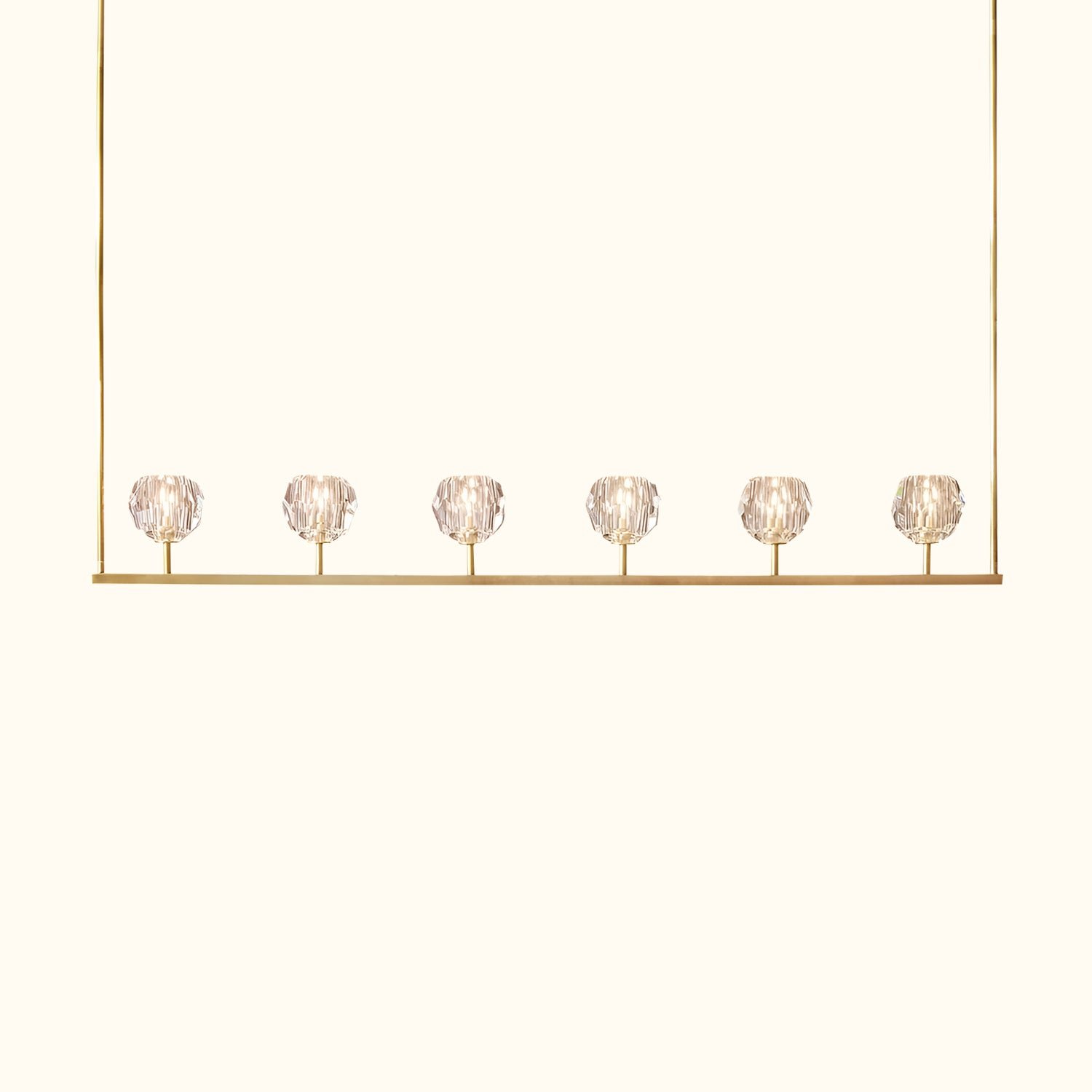 Crafted of solid brass and crystal glass, this sculptural fixture by lighting designer reflects his passion for luxurious materials and superior craftsmanship. Each finely faceted sphere is hand-ground and polished, evoking the minimalist spirit of 1960s design, to reflect and refract light.
