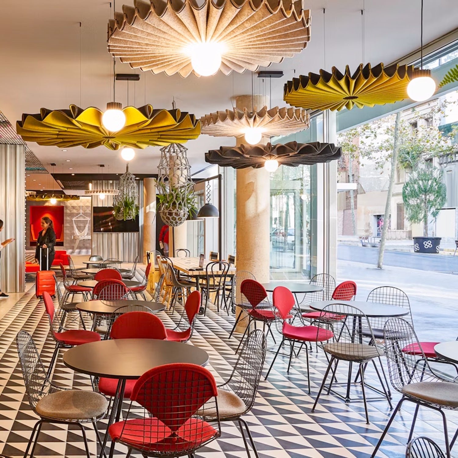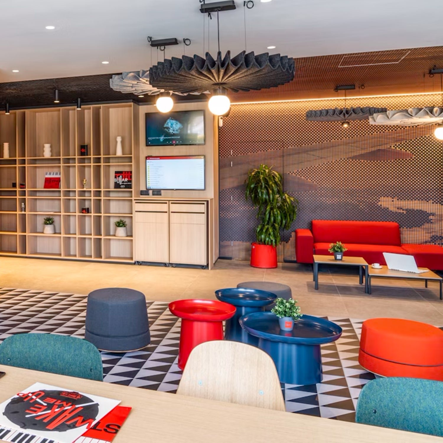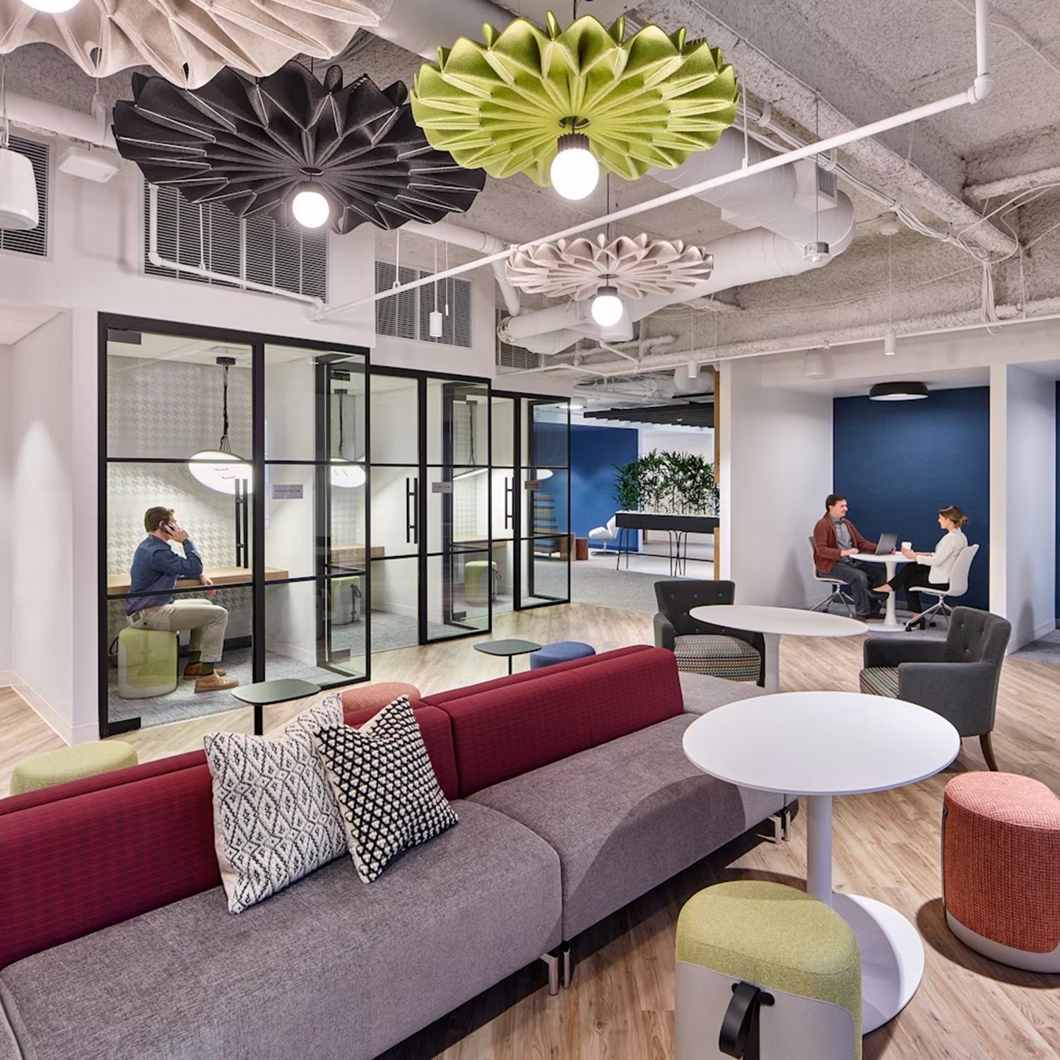 The BuzziPleat Light boasts a sculptural design that excels in both innovative aesthetics and exceptional sound absorption. Featuring an integrated LED lighting element, this acoustic solution seamlessly combines decorative illumination with effective sound control.The architectural folds of the BuzziPleat Light maximize surface area, ensuring superior acoustic performance. Its large folds capture mid and low tones, preventing sound waves from reflecting between hard surfaces. By combining multiple BuzziPleat Lights at varying suspension heights, you can effectively reduce sound in spaces with high ceilings.