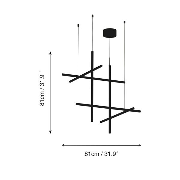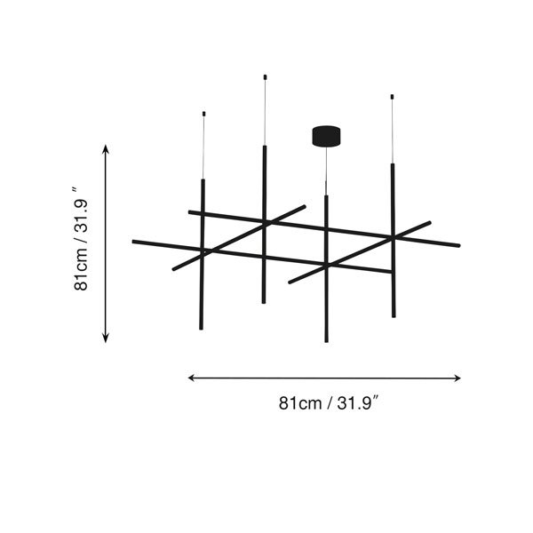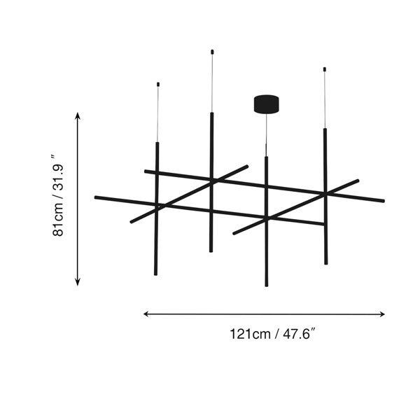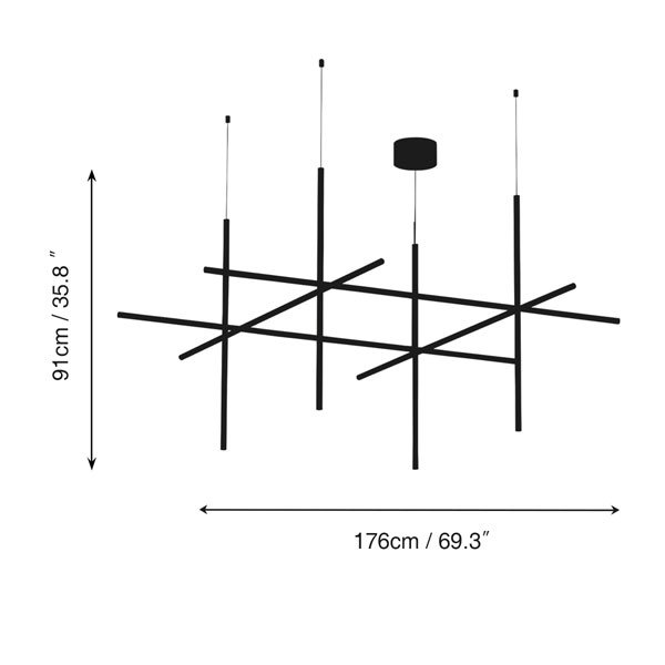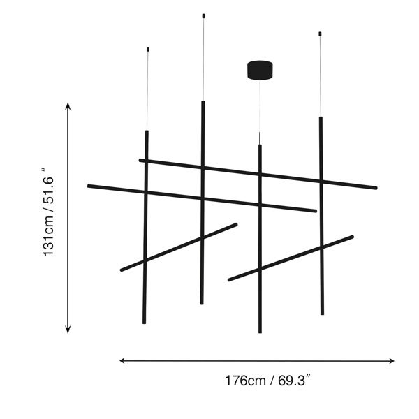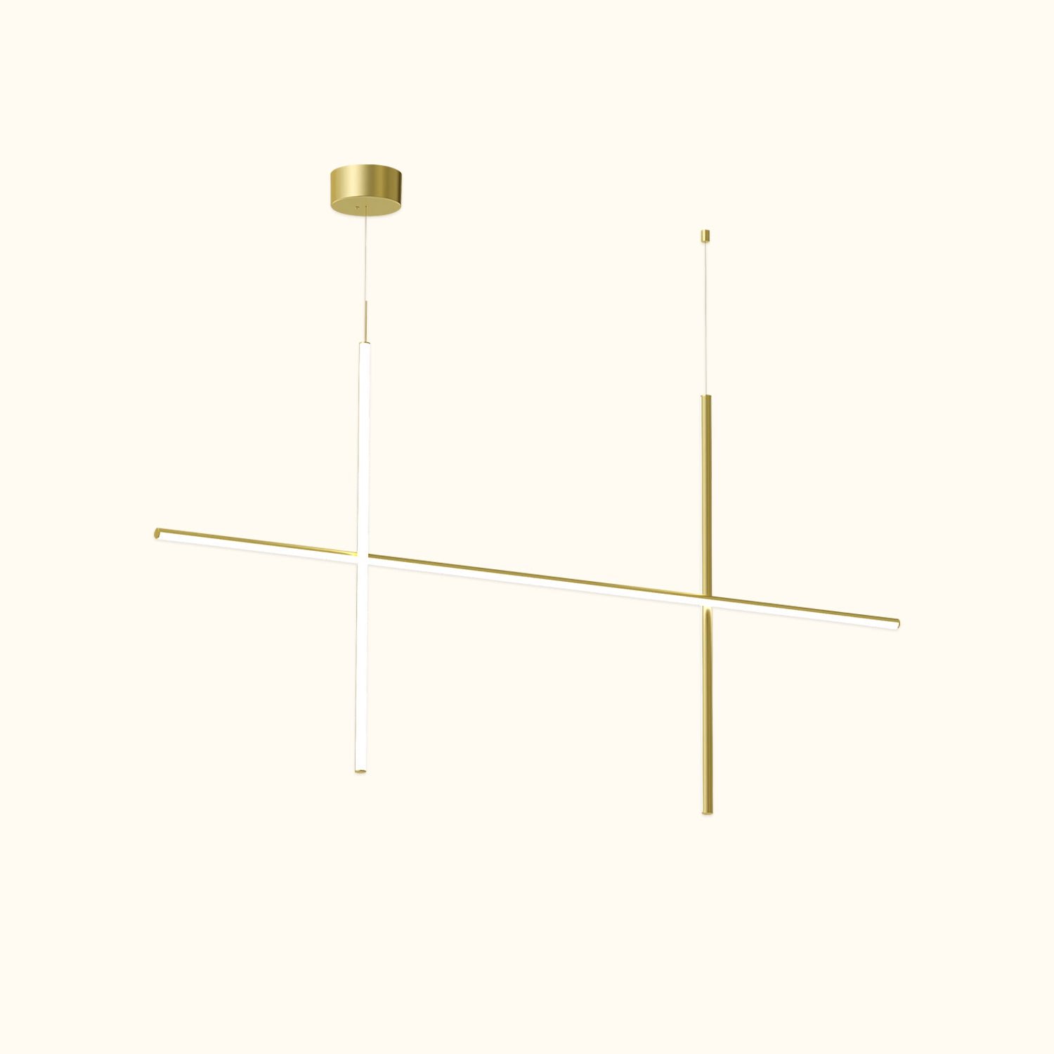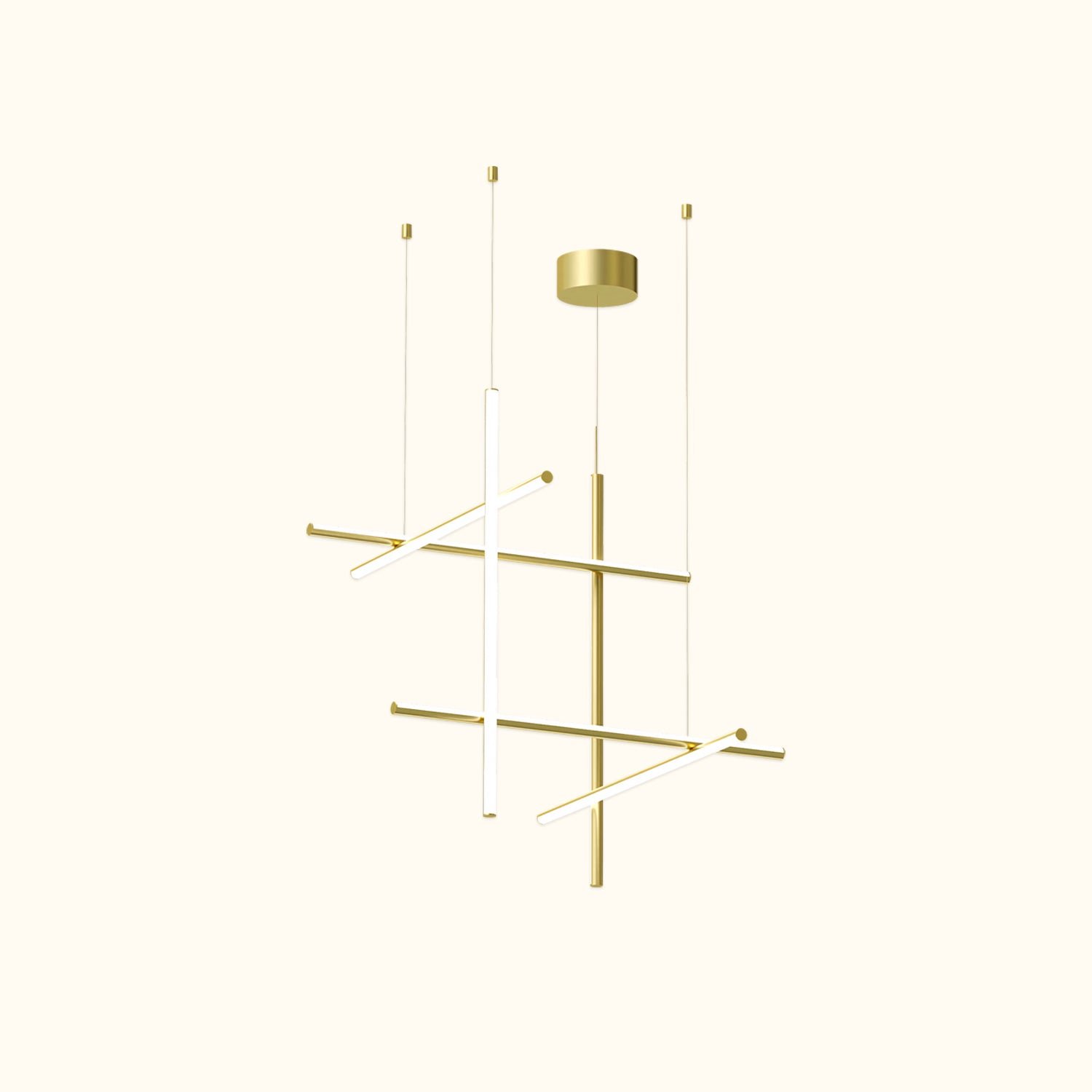 The Coordinates chandelier is a sleek lighting grid bar lamp, featuring a sculptural design suspended from concealed cables to achieve a floating effect. Each element is made from extruded anodized aluminum and is equipped with integrated LED light strips and platinum optical silicone diffusers. The hanging height is adjustable. Installing this striking piece in modern residential and commercial spaces can create a dramatic effect.