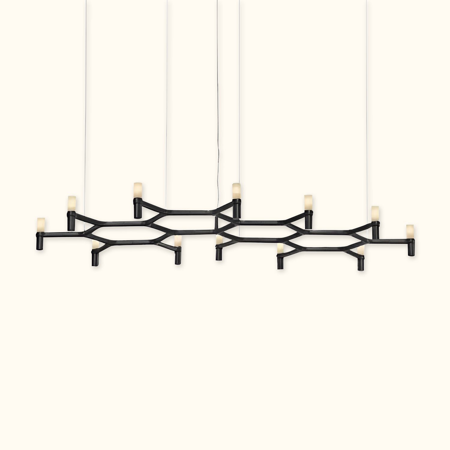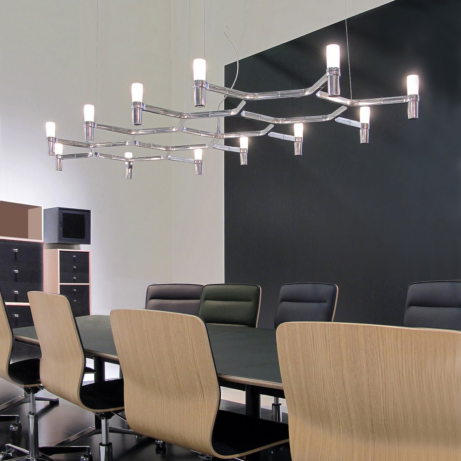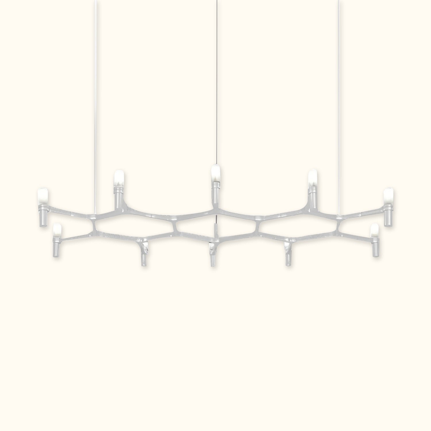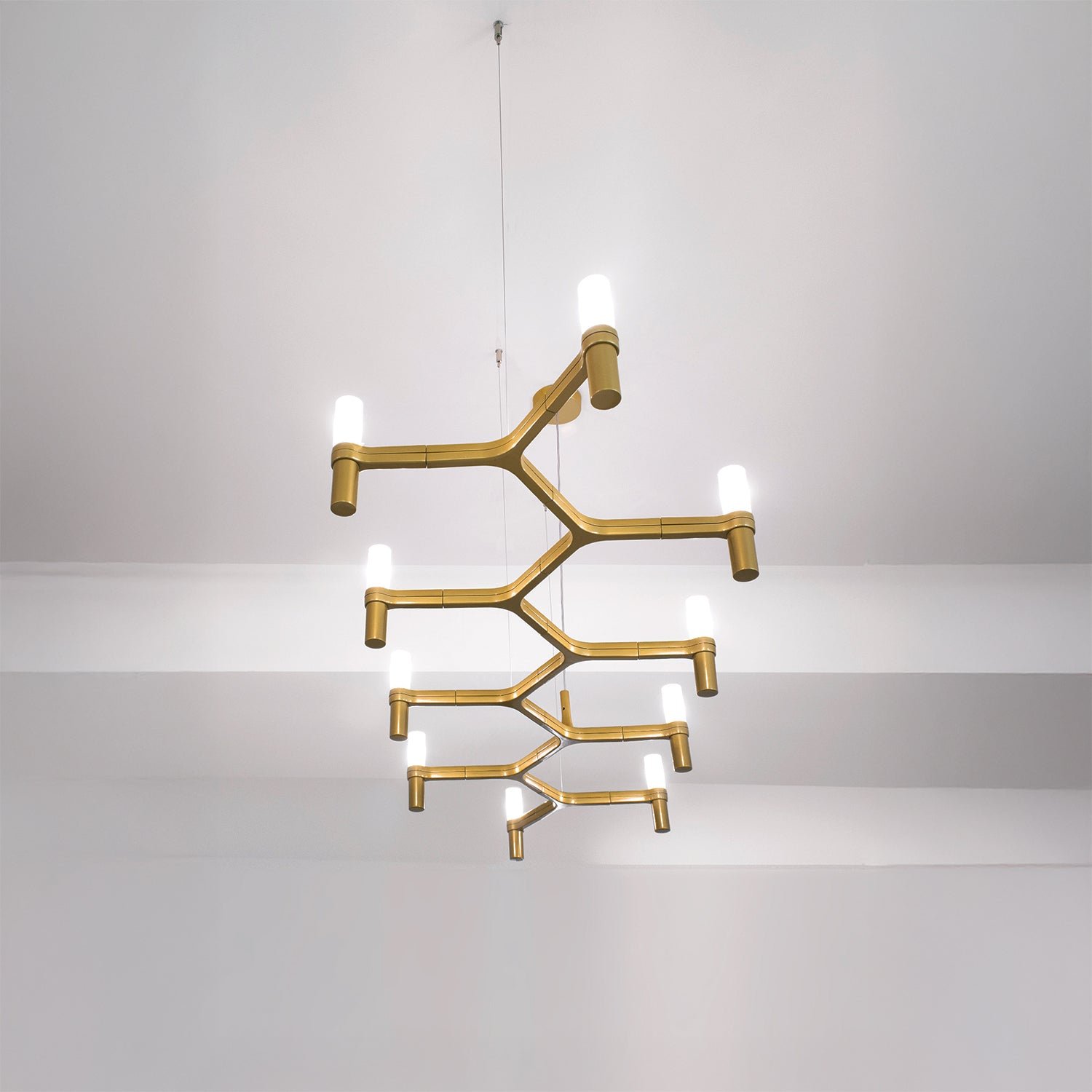 A contemporary design reminiscent of ancient chandeliers, this piece takes inspiration from the shape of snowflakes. It is characterized by versatile designs with striking visual appeal, and its modular structure allows for endless combinations of colors and sizes.