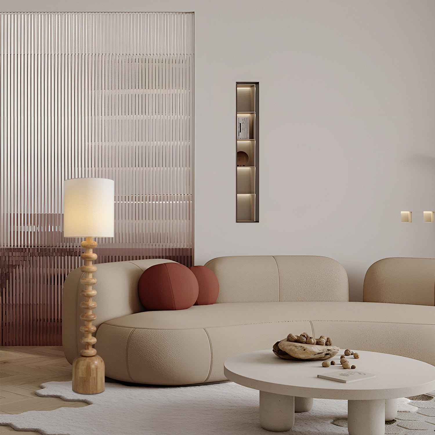 The Emil Wood Floor Lamp is a modern, minimalist lamp with a solid wood base, often made of oak or walnut. It has a simple, slim design that fits well in contemporary spaces. The lampshade is usually fabric or metal and gives off soft light, perfect for cozy corners or living rooms. The natural wood finish adds warmth, making it a stylish and functional piece for any home.