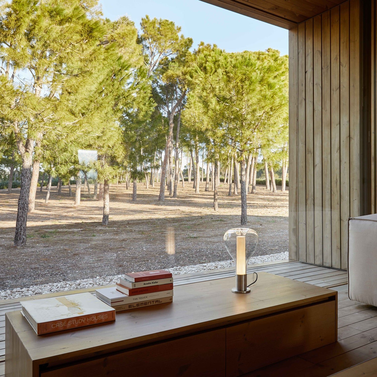With its minimalist, orb-like shape and serene presence, Eris embodies an ethereal beauty. Designed by Mayice, Eris features several distinct elements: a natural wood veneer tube encased in a hand-blown borosilicate glass orb, finished with a contrasting metal base. As the perfect accent lamp, Eris offers a soft and pleasing ambience, capturing the sublime harmony of glass and wood.In the Eris Table lamp, the interplay between light and shadow, glass and wood, is beautifully showcased. The design evokes a sense of tranquility, allowing for individual self-expression.