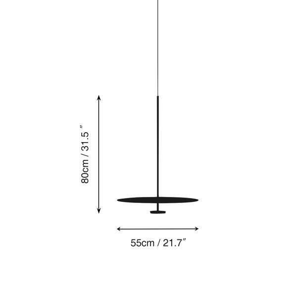 The Flat 5940 lamps are a creation by the designer. These disc-shaped lights descend from the ceiling to form a hanging lamp, where the planes of reflected light blend seamlessly with the architecture. All models in the Flat collection are equipped with LED lighting and are available in a range of neutral color tones.