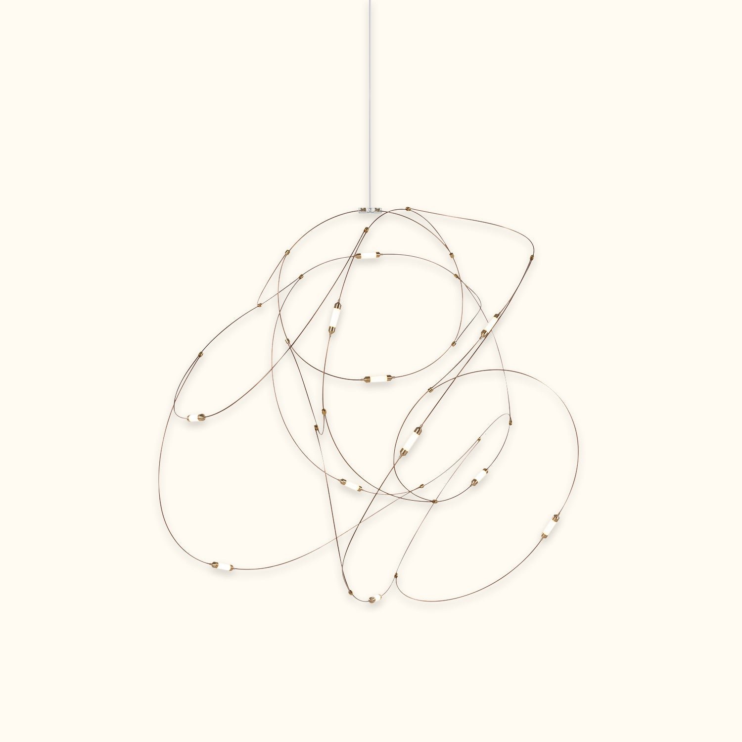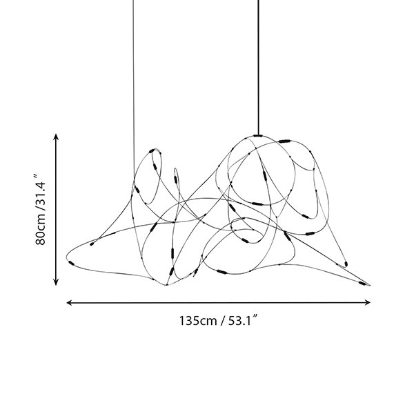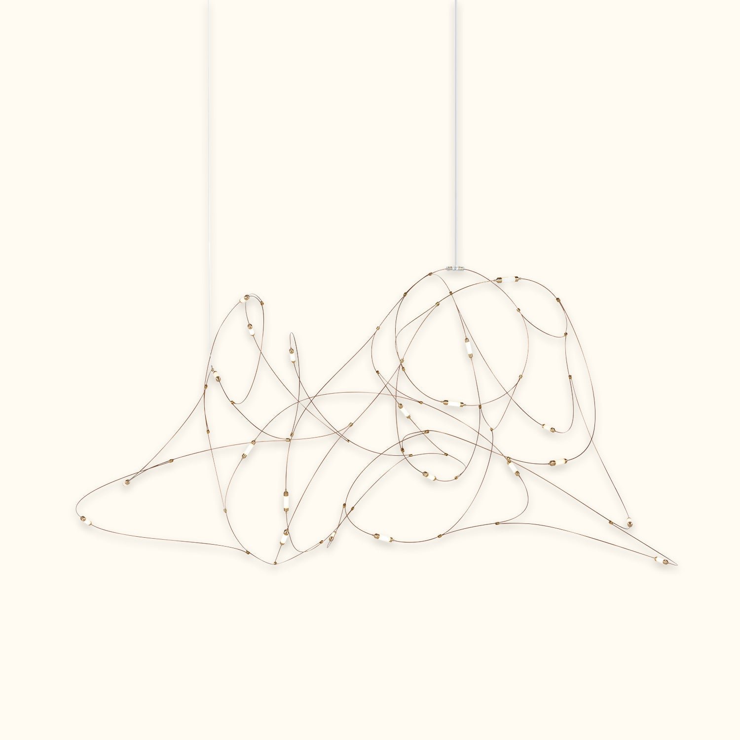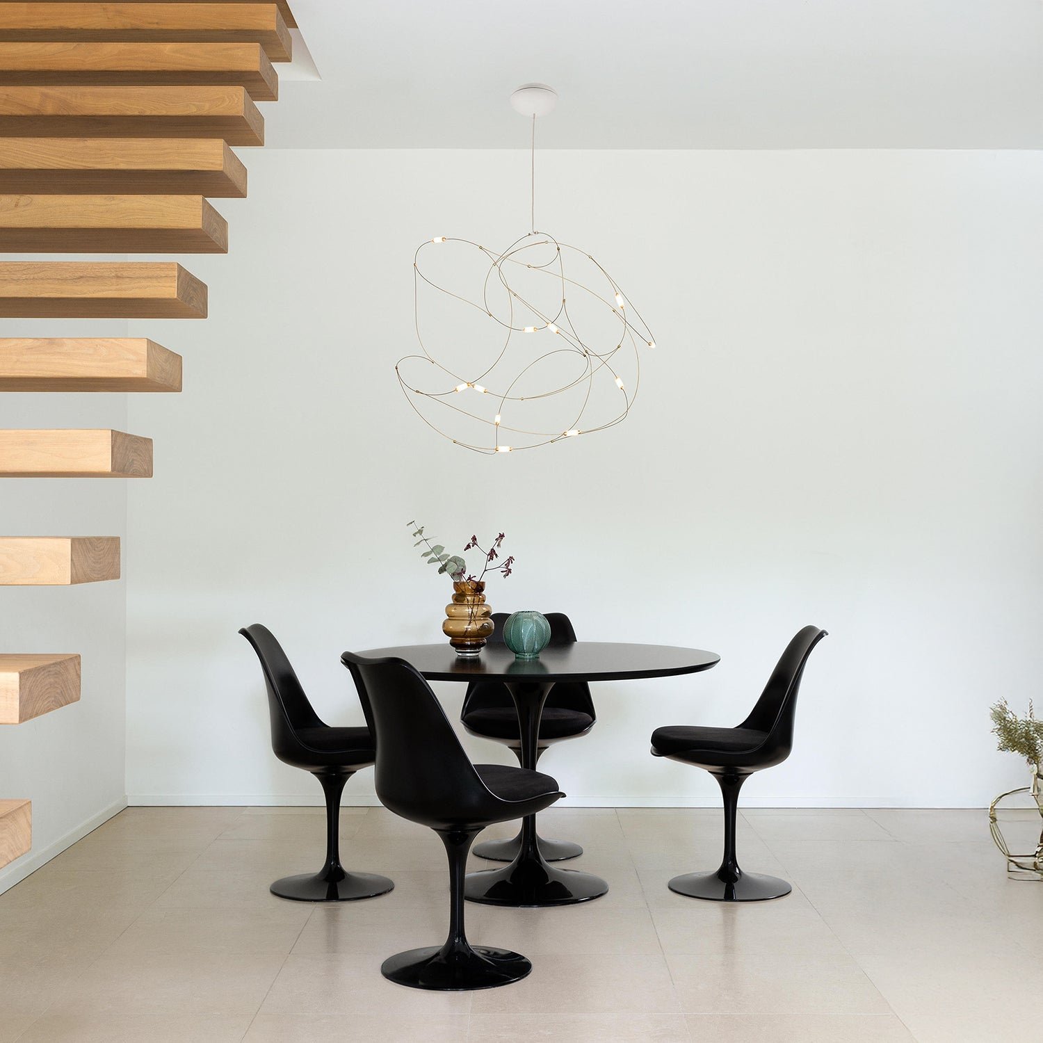 The design of the Flock of Light is a bright and transparent artwork during the day, and a warm, radiant light group at night. The light group remains stationary. Flock of Light is available in three sizes: 11, 21, and 31, which refer to the number of light sources. No matter the size of your room or table, there is always a Flock of Light that will perfectly illuminate it.