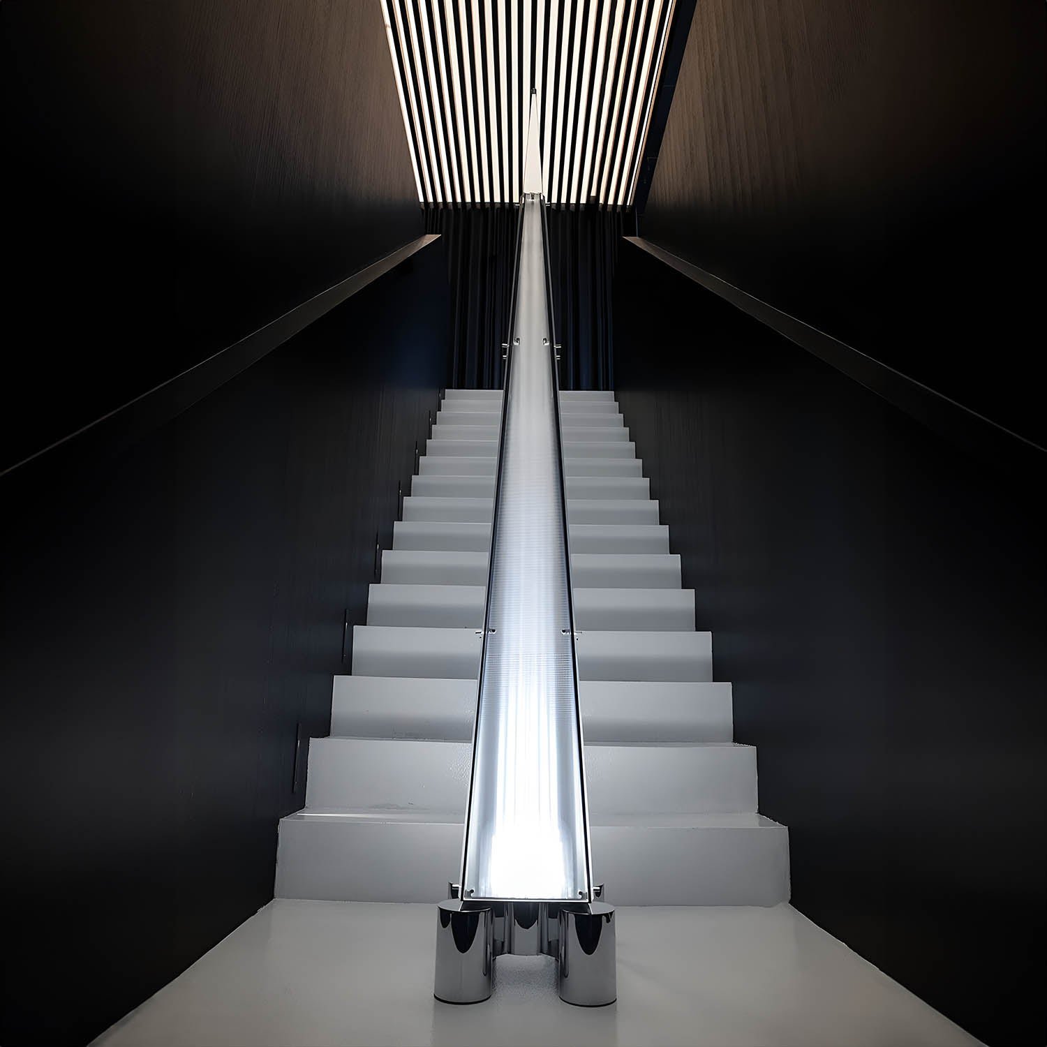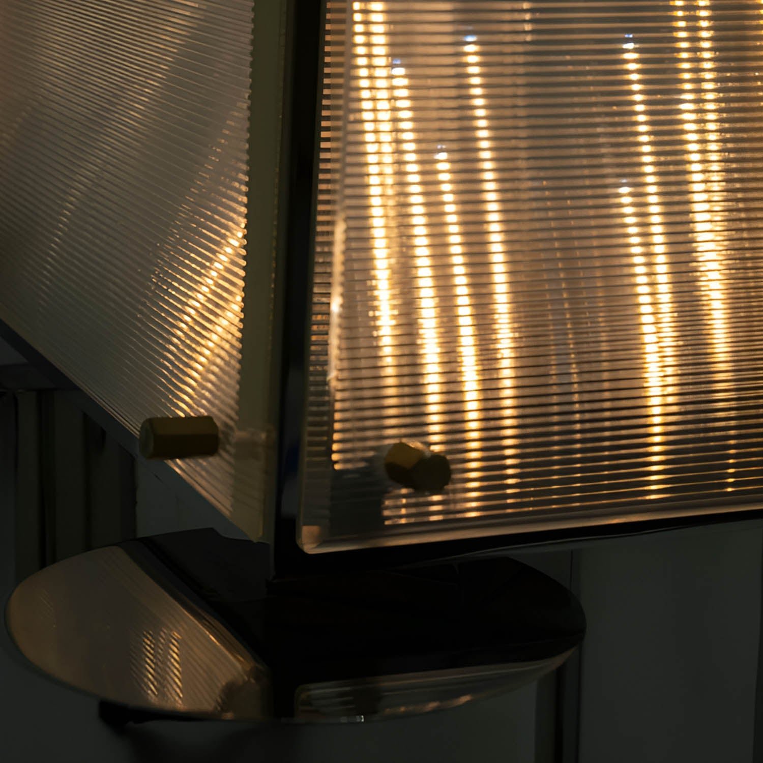 The body of the floor lamp is made of stainless steel and smaller textured glass. This subtle mechanism can distort the direction of light, enhancing the sense of light’s extension. The light is trapped within the glass, and when observed from different heights and angles, it distributes and interacts inside, resembling a curtain of stars, a comet’s tail, or even a tiny universe within a spire, teeming with imagination.