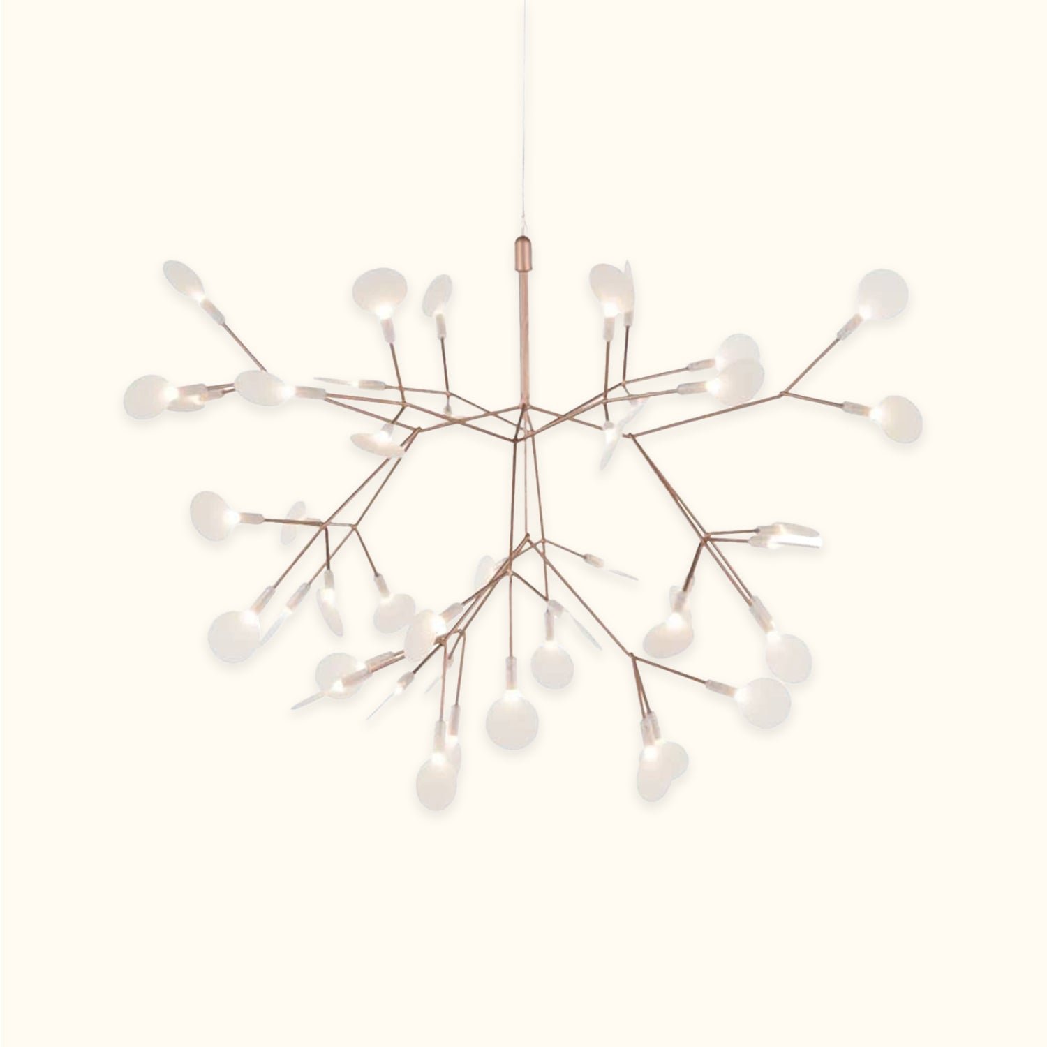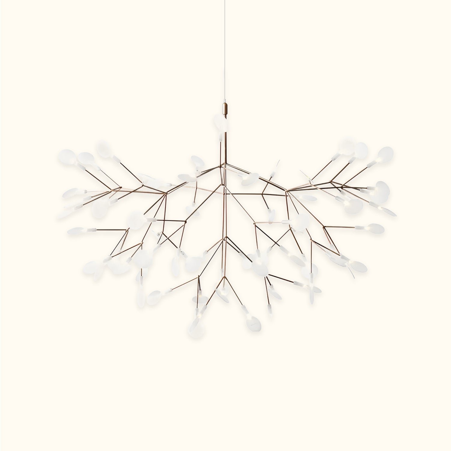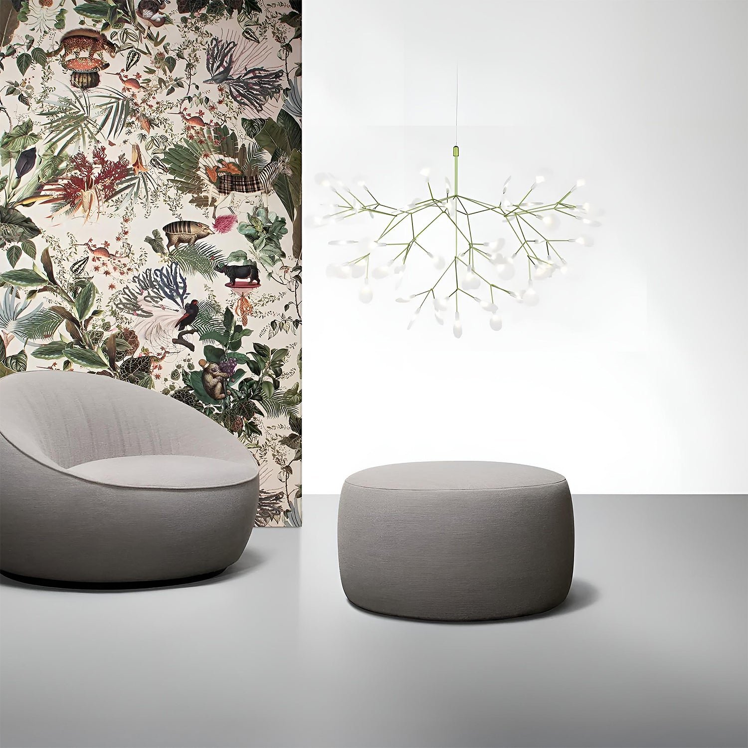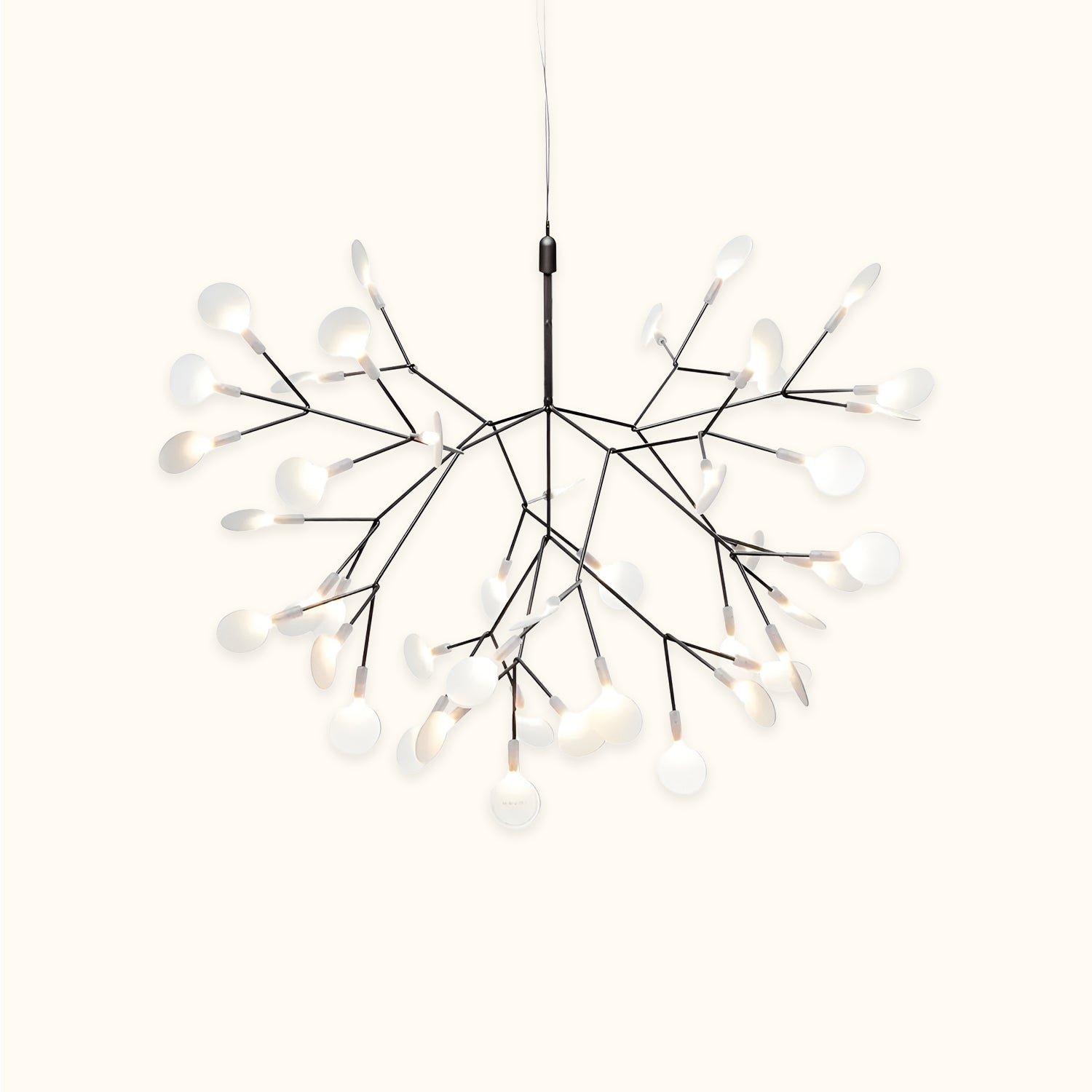 Nature and technology converge in the design of the Heracleum III Suspended. This lightweight LED light is inspired by a flowering plant of the same name, which can grow up to 5 meters tall. The white leaves in the Heracleum III Suspended branch off from a single stem, creating a highly technical natural structure, thanks to a conductive layer coating technology known as Electrosandwich. The Heracleum III Suspended comes in two sizes and four different colors. It is compatible with our wireless wall switch, allowing for quick and easy dimming, giving you complete control over the light output.