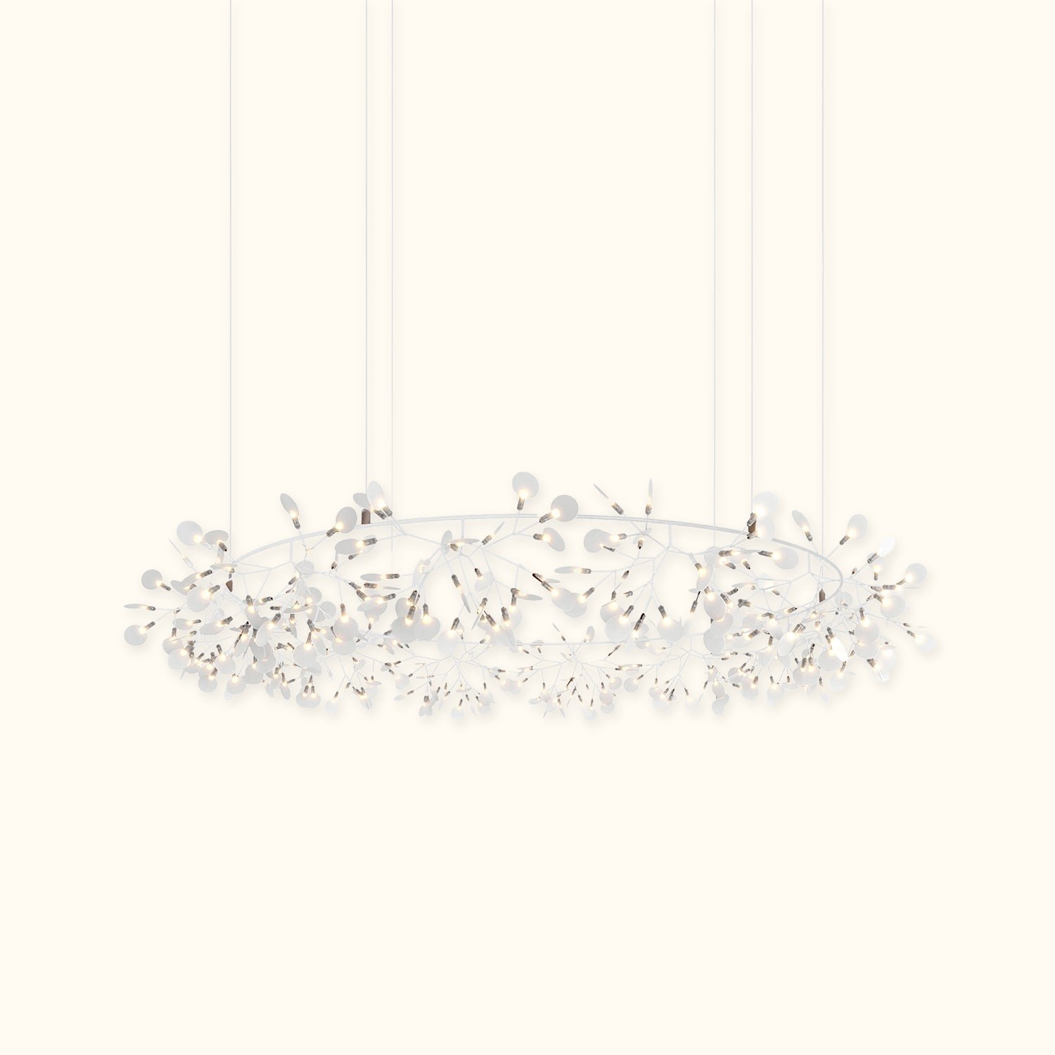 In the design of the III The Big O, the blossoming leaves are shaped into a blooming crown. Historically, the circular crown symbolized power, eternity, and glory. Heracleum III The Big O adds natural beauty and prosperity to this tradition. This pendant light design comes in two sizes and four colors, making it suitable for any space and enhancing the beauty of any interior decor.