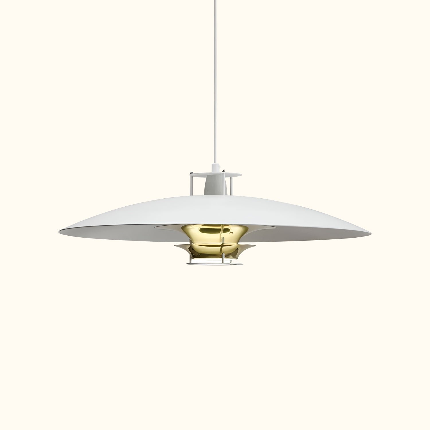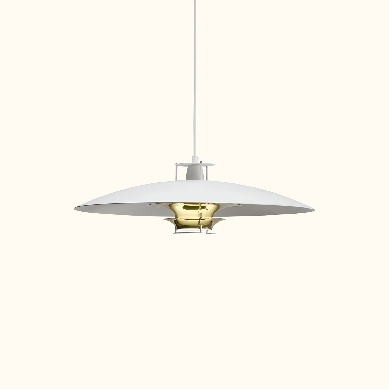 Finding beauty in simplicity, architect Juha Leiviskä used lightweight white aluminium to create the JL341 Pendant Light. The light hangs effortlessly from a simple white cable, while its thin, disc-shaped shade emits a bright glow, providing soft and warm illumination.