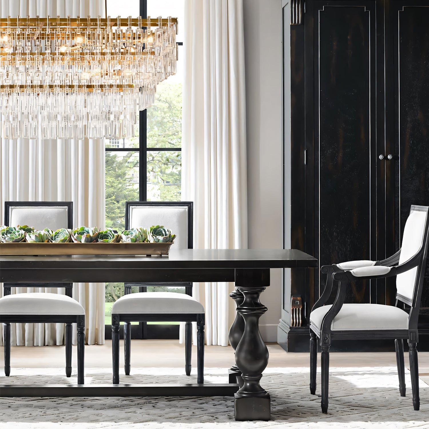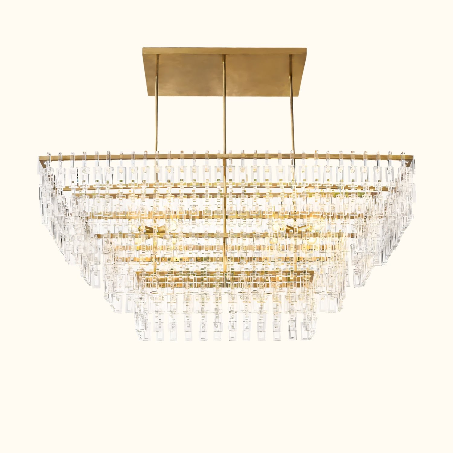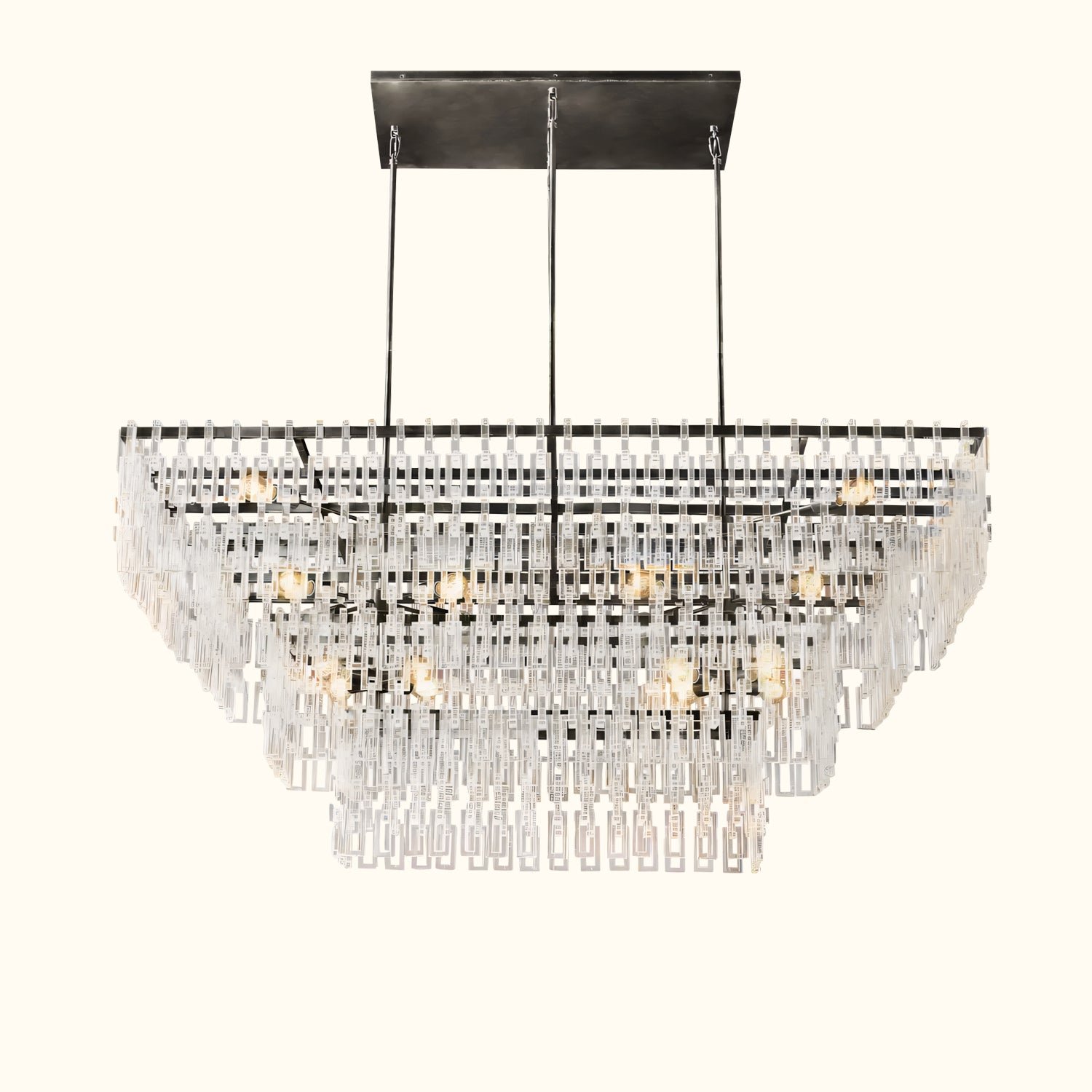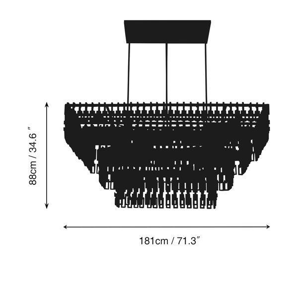 Inspired by industrially processed metal chains, the designers reimagined the interlocking open and closed links in stunning crystal glass. Pure and simple, the stylized links are suspended from more than 600 crystals and wire-free to create a brilliant waterfall of shimmering light.