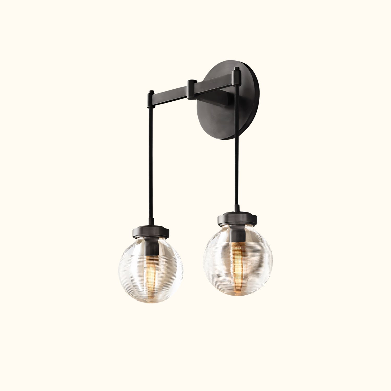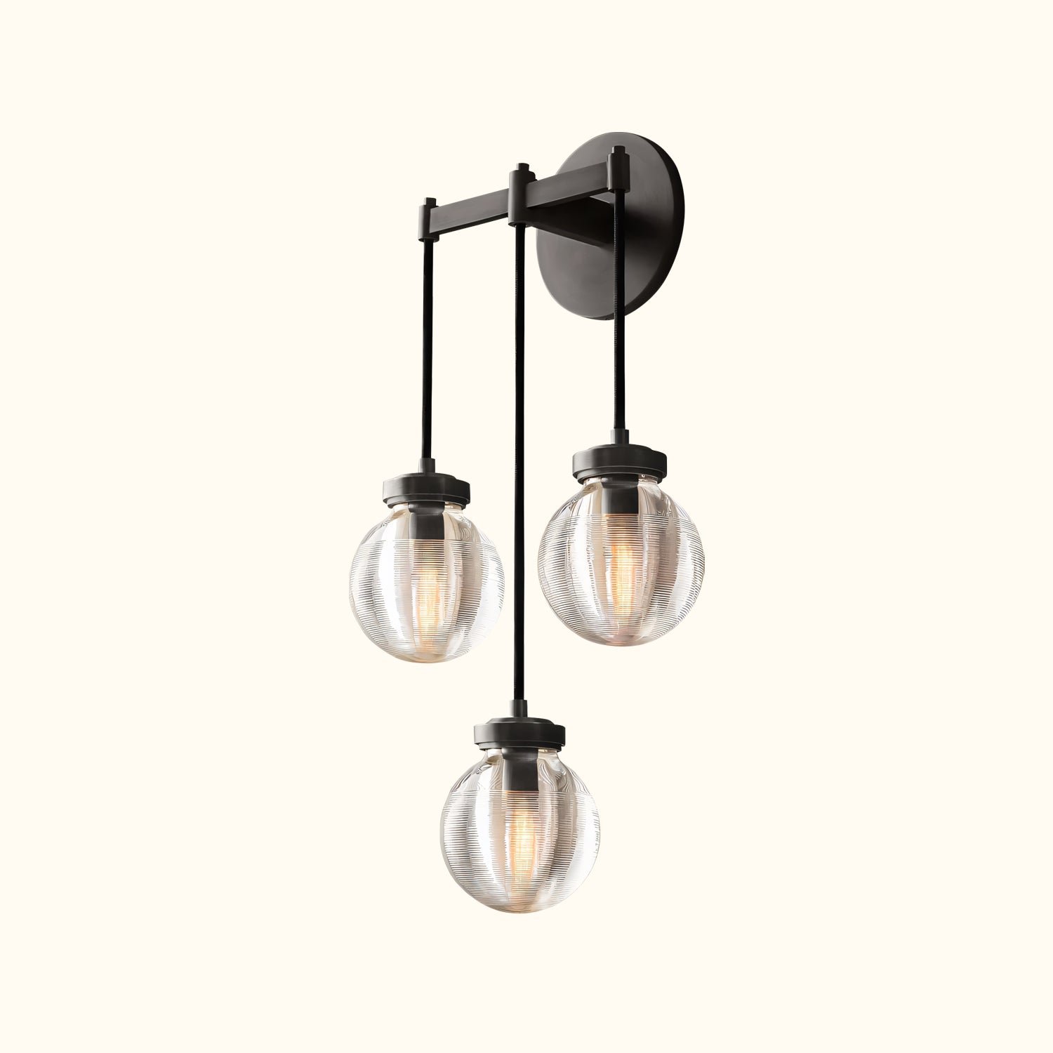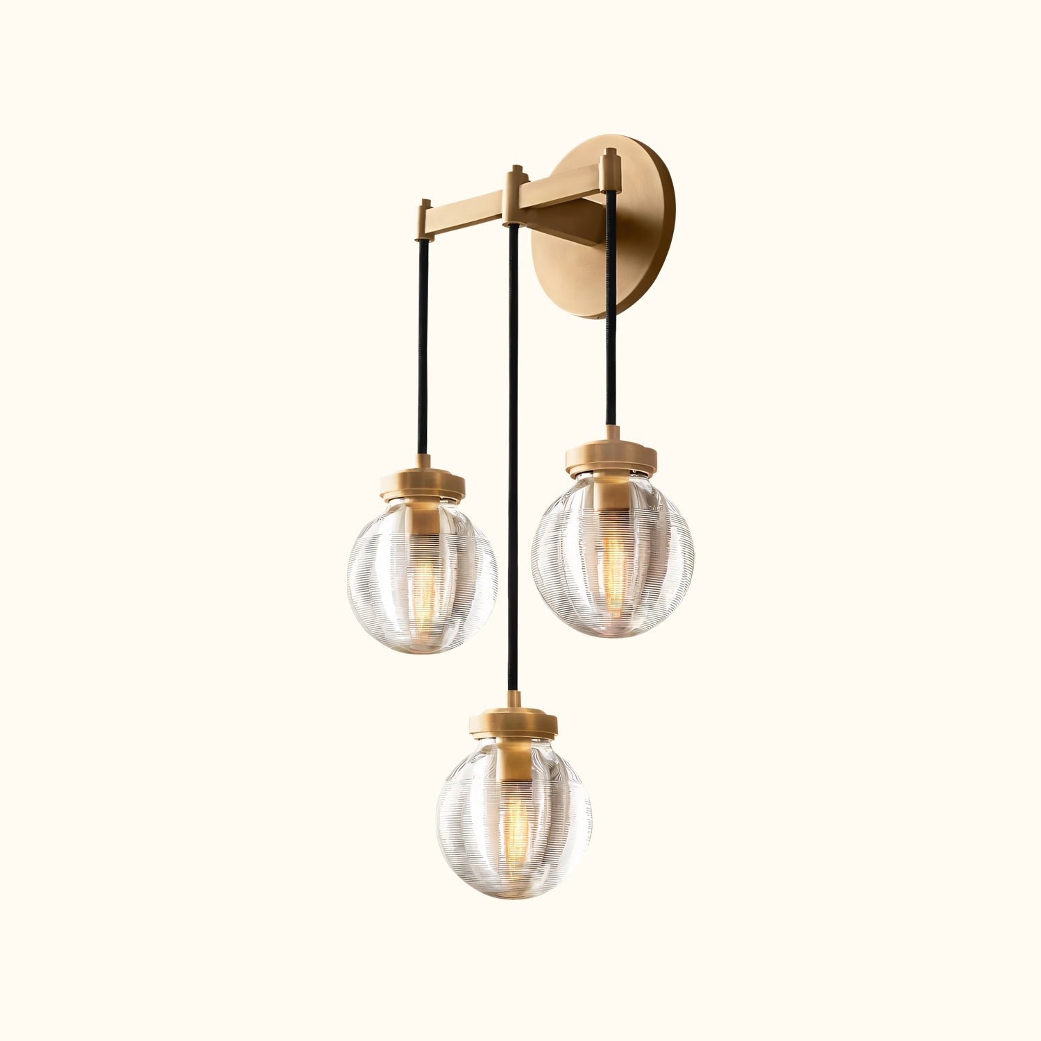 Glass pearls are carved with intricate grooves that create shimmering layers of light, bringing radiant, oceanic beauty to this collection. Influenced by the inciso technique developed by Venetian glass makers, the texture both filters the illumination and invites contemplation, giving these pieces an ethereal yet intimate feel.