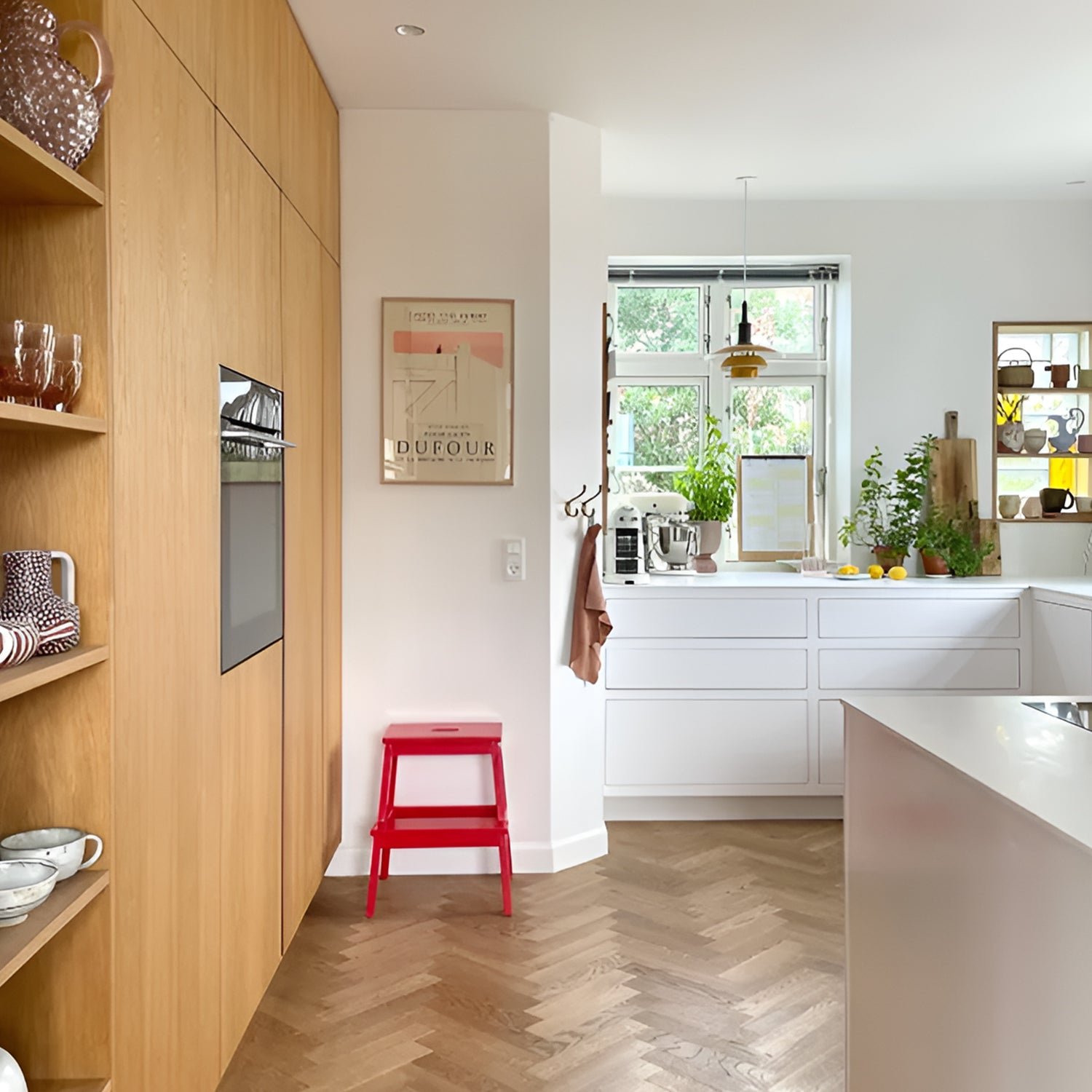 The fixture is designed to be 100% glare-free, based on the principle of a reflective three-shade system that directs most of the light downwards. The shades are made of deep-drawn aluminum with a white inner surface, ensuring a gentle downward light distribution. The downward light is soft and pleasant.