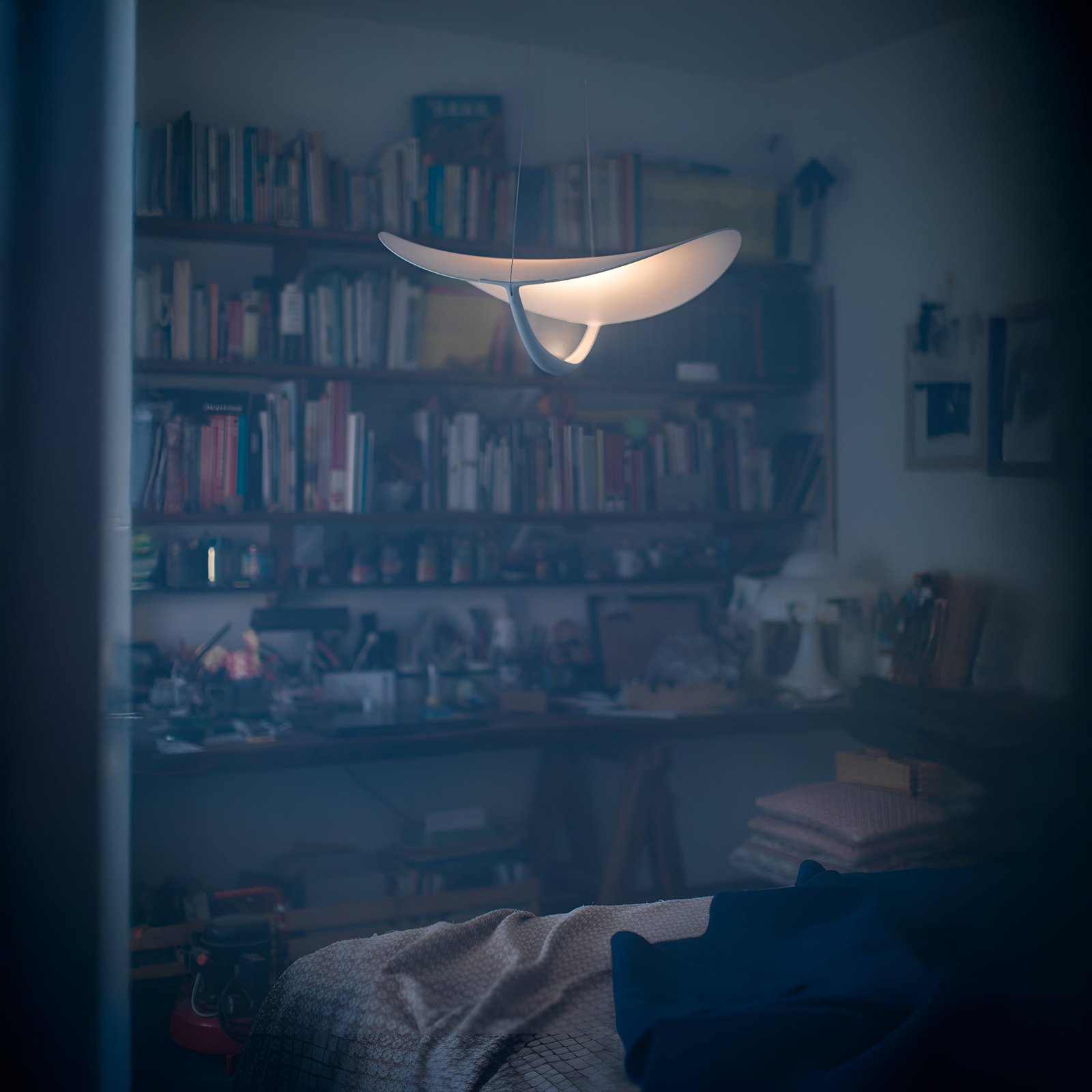 Plena is a pendant lamp made of PVC and painted aluminum.