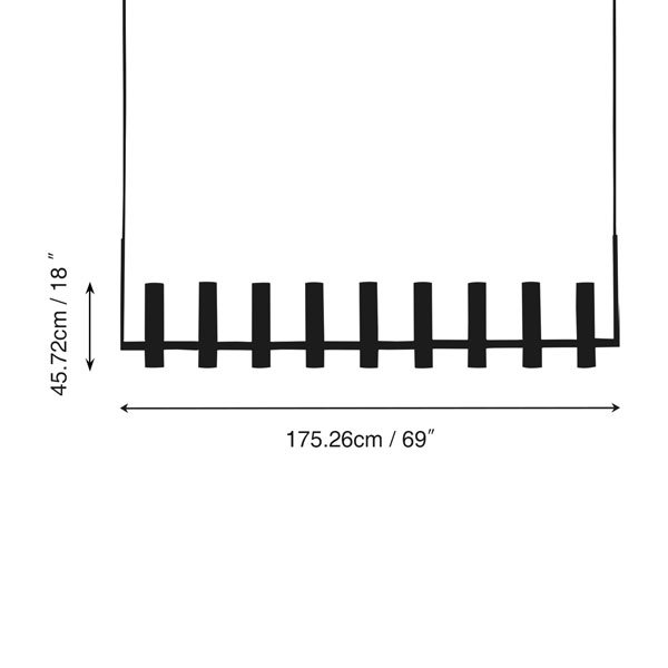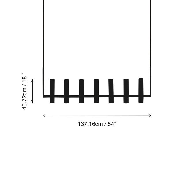 | Chandelier Body: | 54″W x 2½”D x 18″H / 69″W x 2½”D x 18″H |