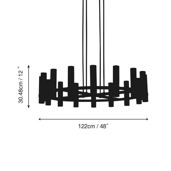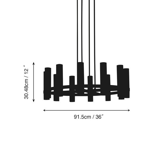 | Chandelier Body: | 36″ diam , 12″H |