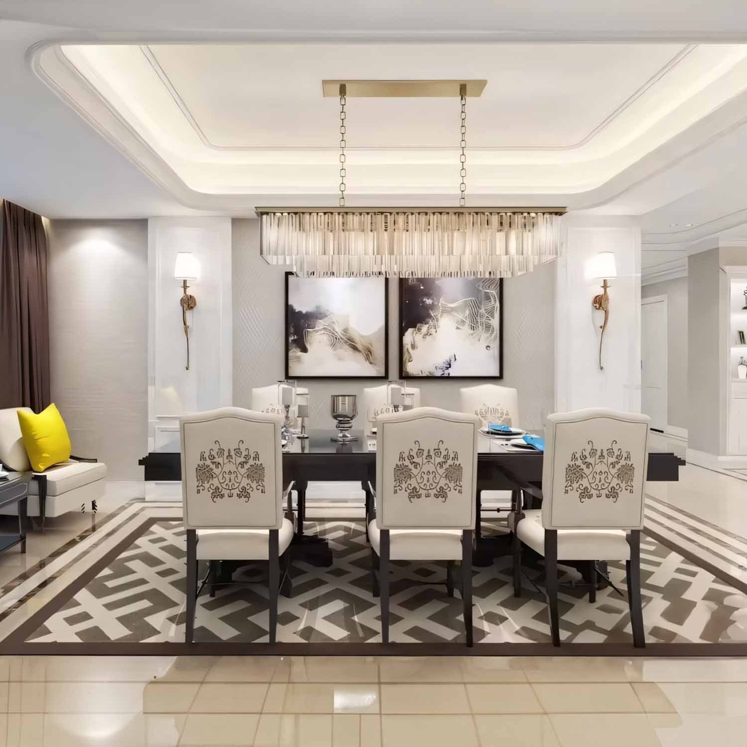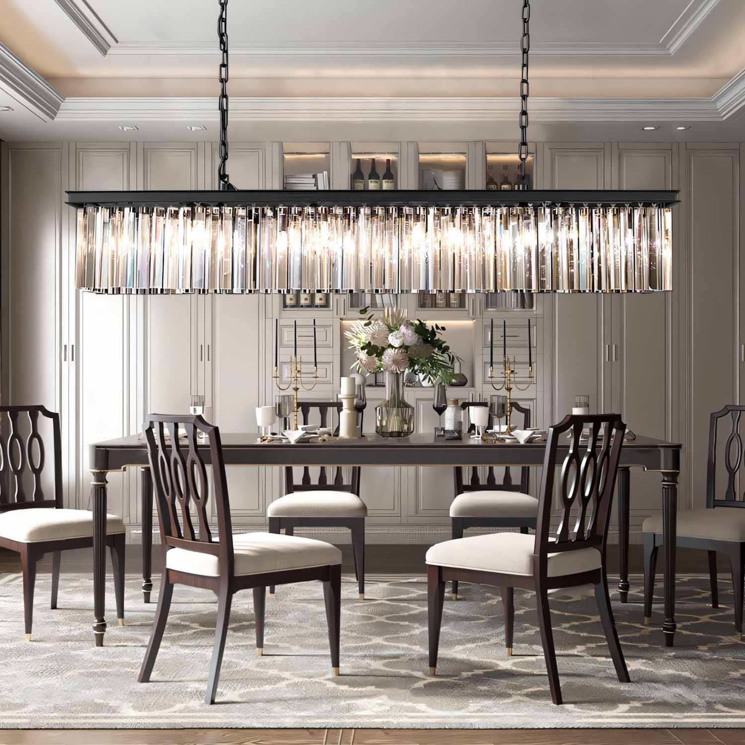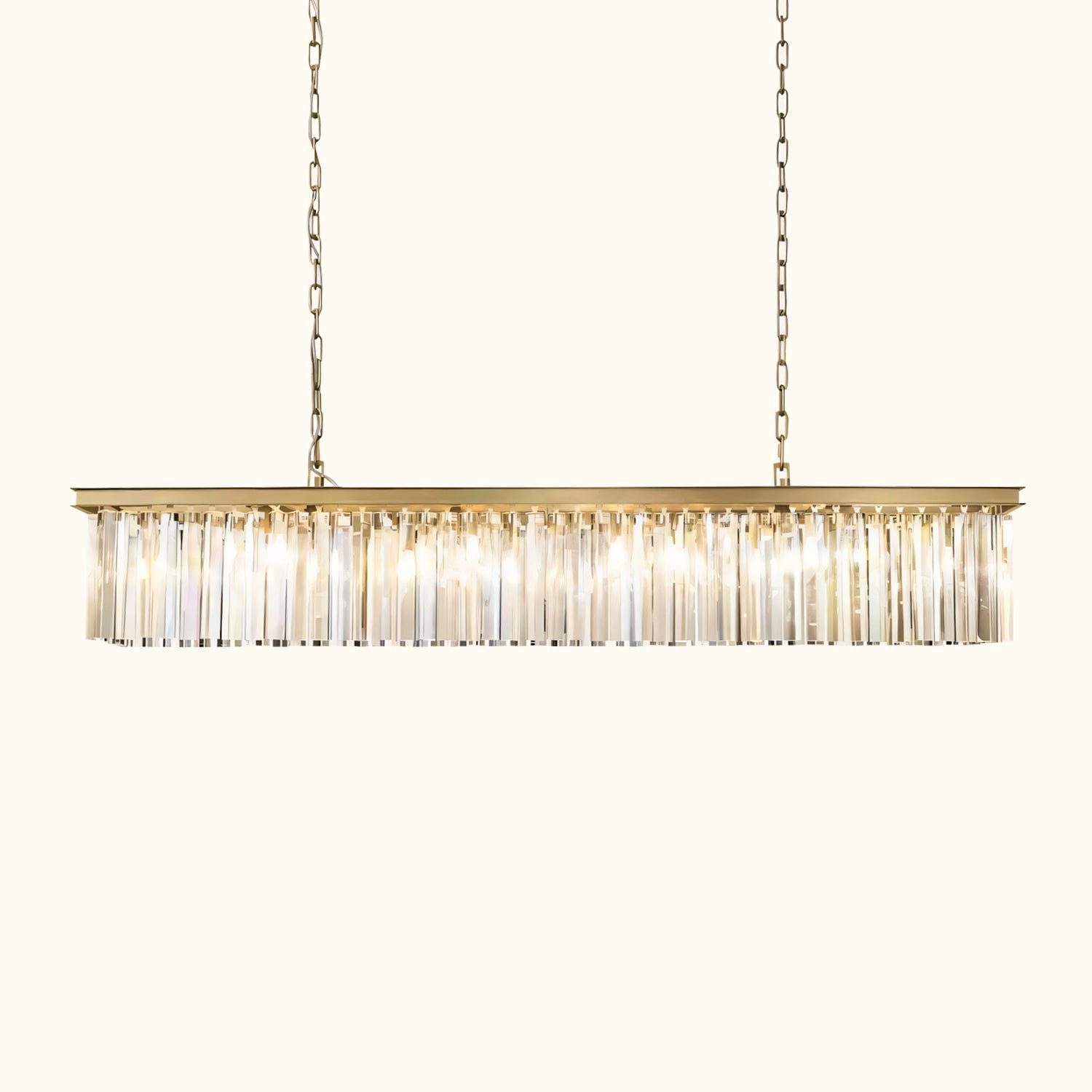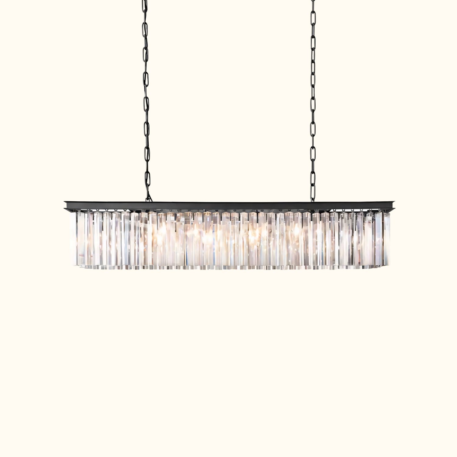 The Art Deco style, originating in 1920s Paris, is beautifully reflected in the straight and curved lines of our elegant lighting. Optical-quality prisms hang gracefully from the iron frame, sparkling in perfect harmony.