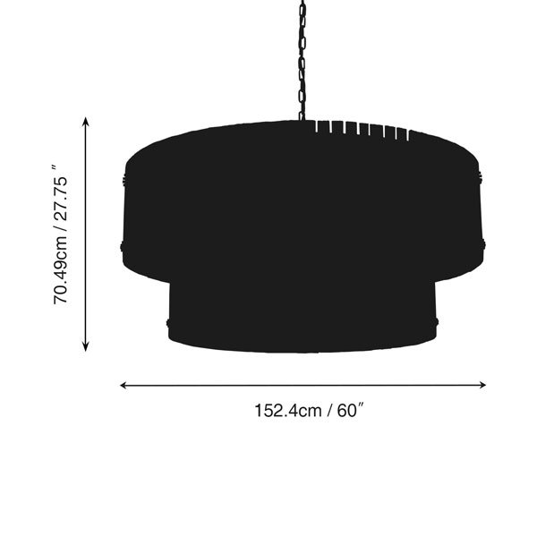 | Chandelier Body: | 22½” diam., 18½”H / 37″ diam , 27½”H / 48″ diam , 27¾”H / 60″ diam , 27¾”H |