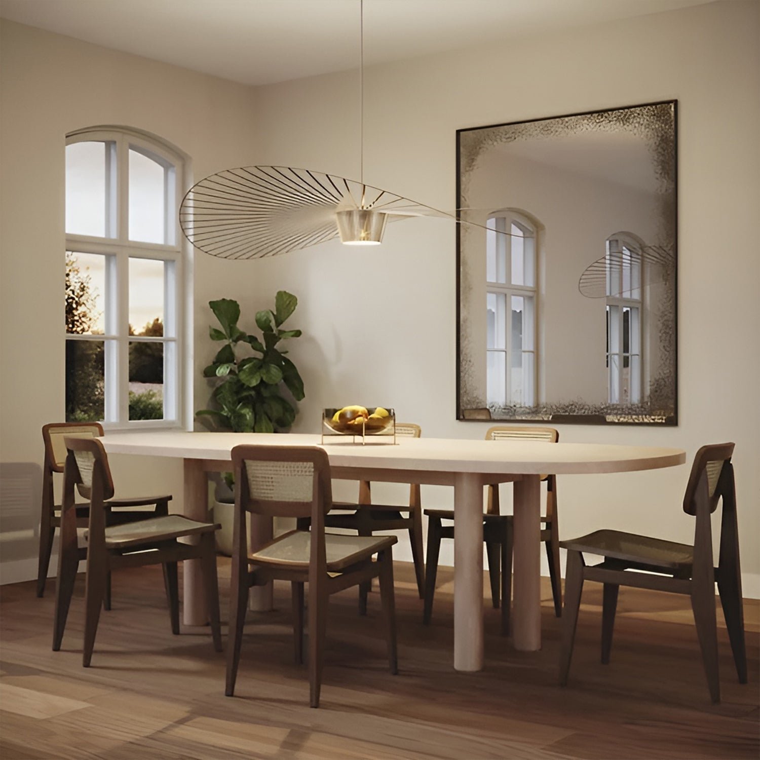 The light, organic shape of this pendant gives the impression that it’s floating on air. It twists and drifts with the air currents in the room, as if it’s blowing in the breeze. The designer’s whimsical style is evident in this fixture, crafted to embrace those in the space and create an intimate ambience. Its fiberglass and polyurethane structure casts a dynamic array of shadows on the walls, enhancing the drama of this versatile pendant.