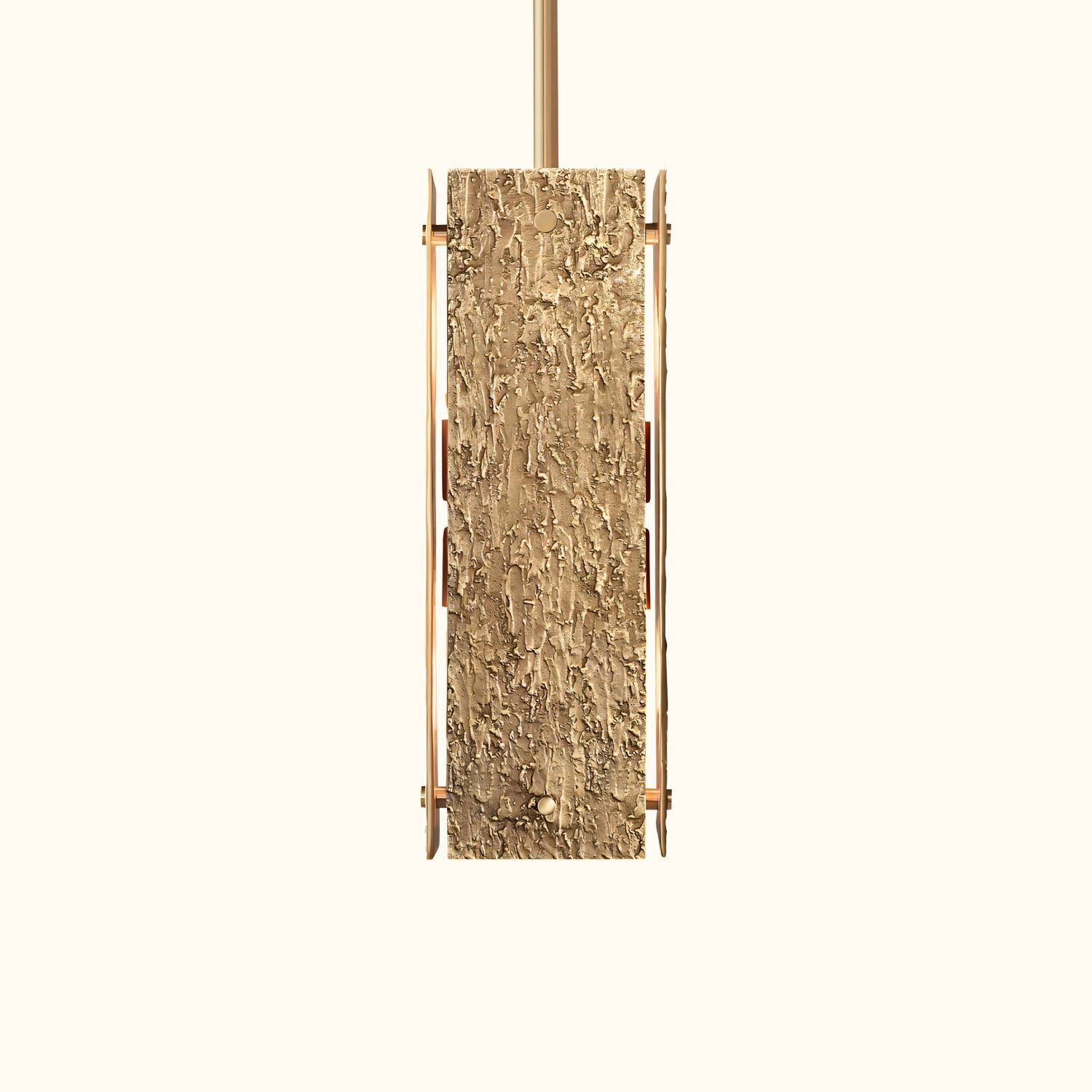 Solid brass is cast in a handcrafted mold to achieve the complex, sensuous texture that defines the sculptural Vouvray collection. The minimalist geometric form perfectly showcases this tactile surface, evoking the work of modern master Alberto Giacometti. The glow is moody and atmospheric.