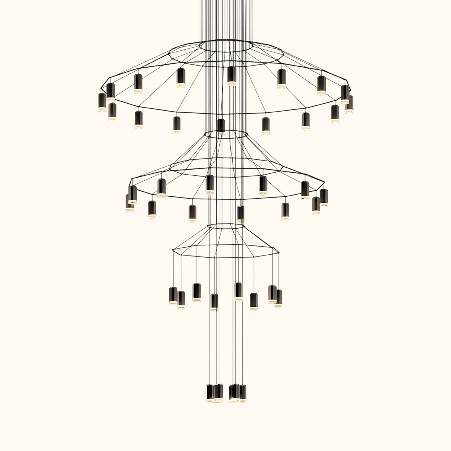 The Wireflow chandelier series features a collection of three-dimensional pendant lamps. By simplifying the traditional chandelier design, this series achieves a refined and distinctive conceptual character, resulting in an ethereal lighting fixture.
