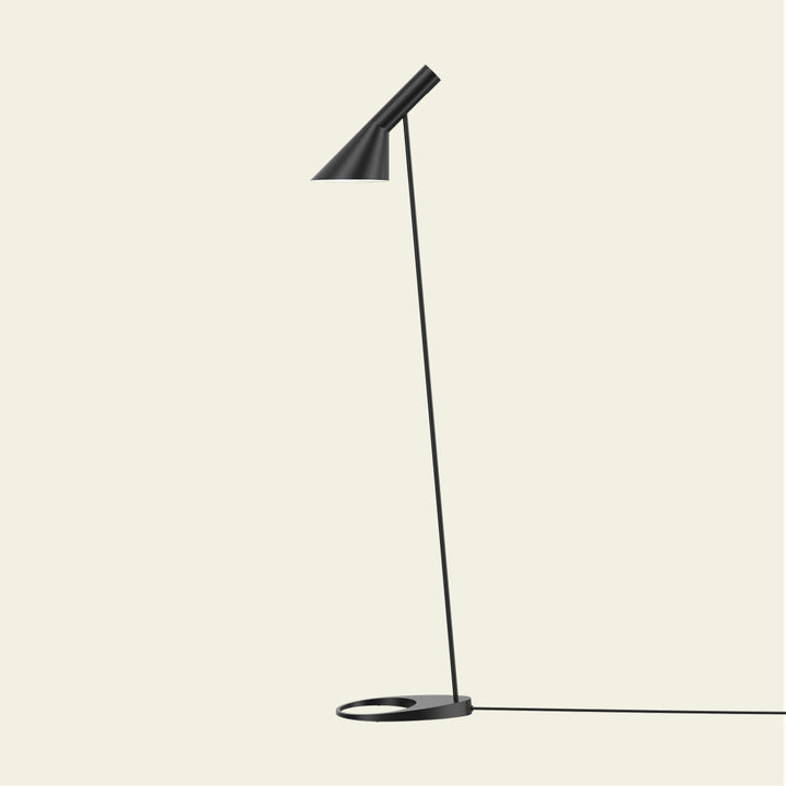In 1957, this lamp was designed for a royal hotel in Copenhagen, featuring many other functions. The floor lamp produces a pleasant downward-directed light through its white-painted inner shade. Additionally, the shade can be tilted to adjust the light distribution. The lamp series is considered a globally renowned design. In addition to the floor lamp, the series includes a table lamp, a smaller table lamp, a wall lamp, and another table lamp, all of which were commonly found in the hotel after its completion in 1960. The clean, unique shape of the lamp and its flawless light can be seen throughout the hotel, along with copper and stainless steel. The lamp series, along with the royal design, became part of the overall design concept created for the hotel, with almost everything designed by the same individual. The similarities between the straight lines in the lamp design and the combination of straight and curved lines are also evident in the geometric outlines of the architecture.