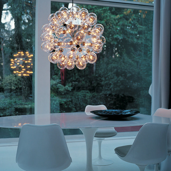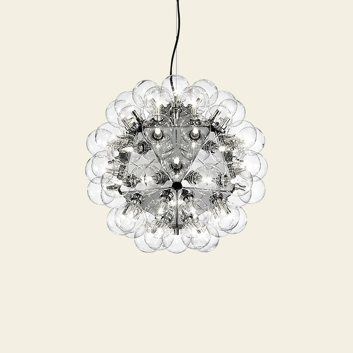 The suspension device provides direct and indirect lighting. The structure is composed of 20 pressed and polished aluminum triangles.