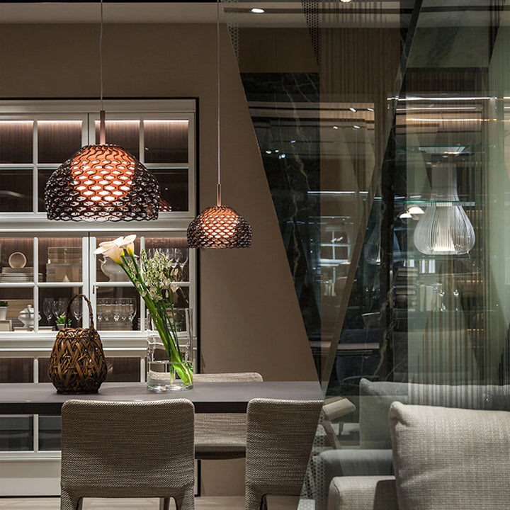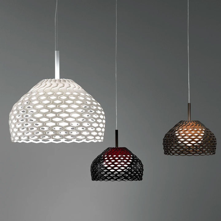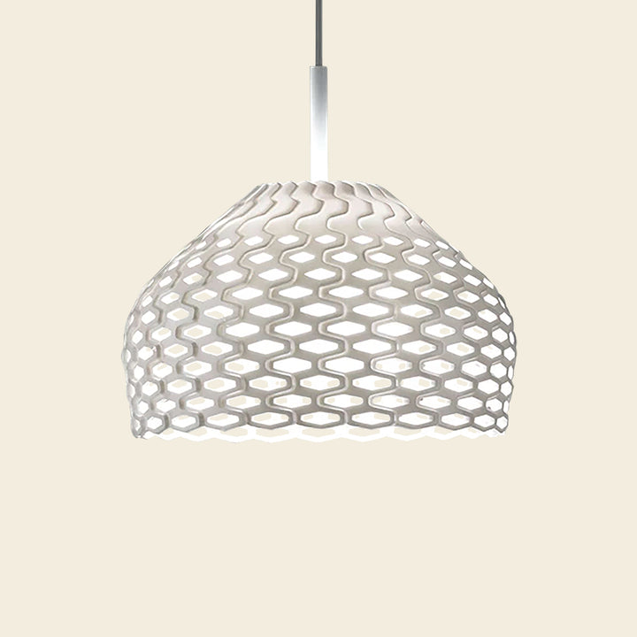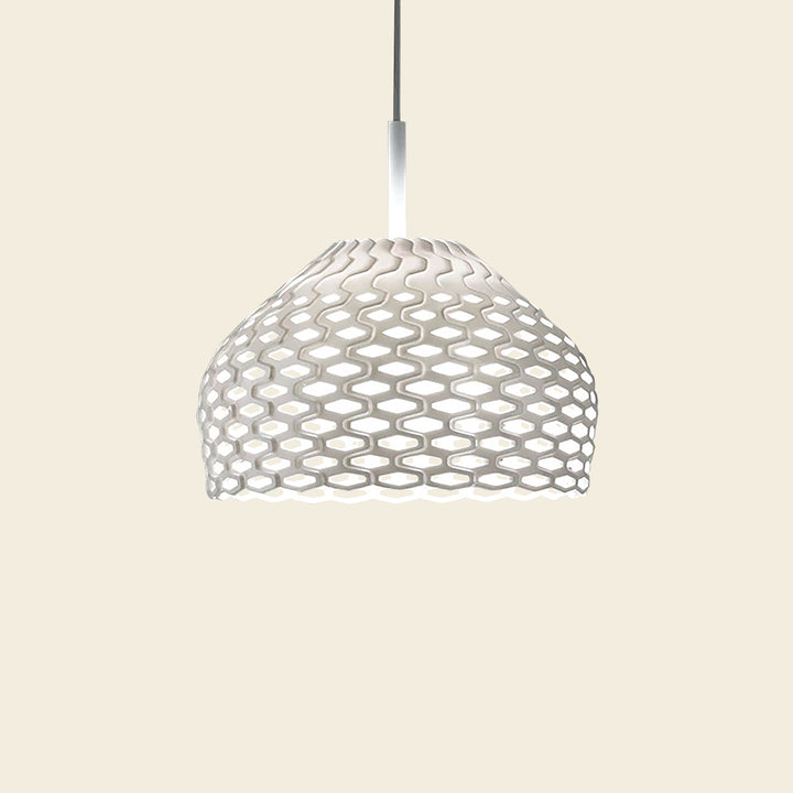 Diffused light suspended lamp. External diffuser made of polycarbonate. Internal diffuser made of injection-molded opal polycarbonate.