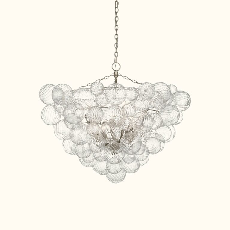 The Talia series, designed with artisanal glass, brings a fresh twist to the simple glass globe light fixture.Light filters through